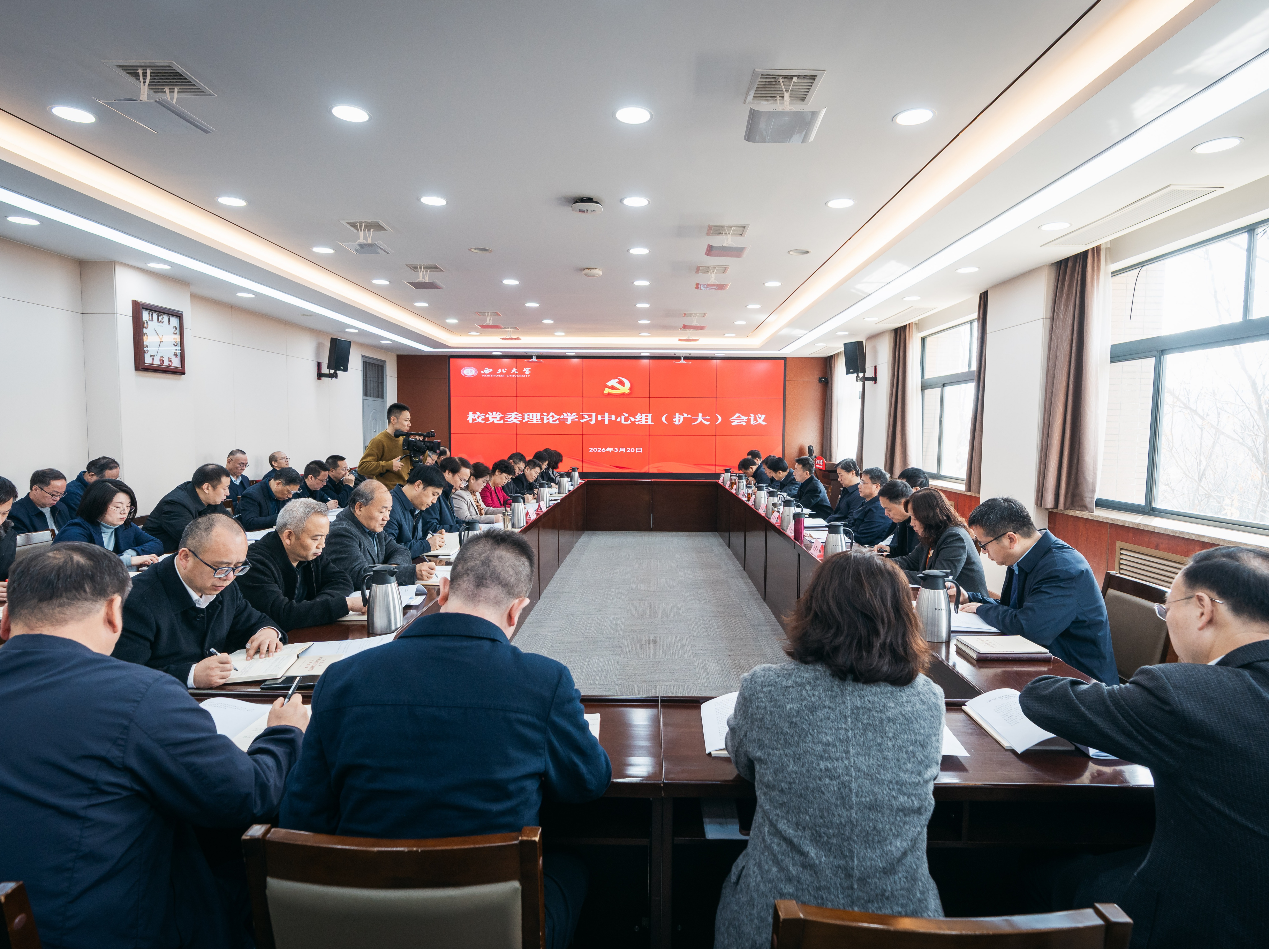 3月20日上午,校党委中心组(扩大)会议在长安校区召开,专题学习2026年全国“两会”精神,深入学习习近平总书记关于树立和践行正确政绩观的重要论述。校党委理论学习中心组成员、校内各党委(直属党支部)书记和相关处室负责人参加了会议。会议由校党委书记蒋林主持。会上,校党委副书记赵作纽领学了习近平总书记在看望参加政协会议的农工党、九三学社、医药卫生界、社会福利和社会保障界委员时的重要讲话。校党委副书记、纪委...