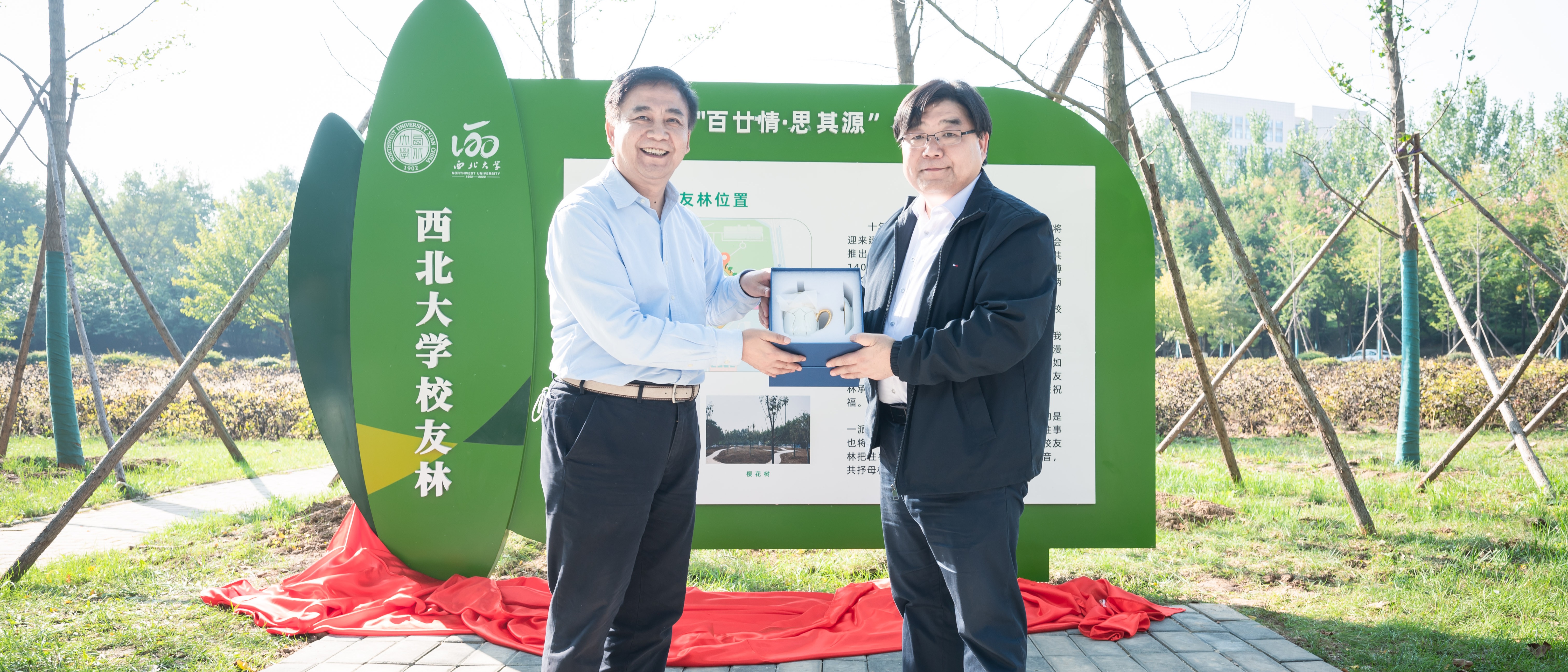 9月25日下午,学校在长安校区举行“百廿情·思其源”校友林揭牌仪式。校党委书记王亚杰,校党委常委、副校长吴振磊,汉景帝阳陵博物院院长、1989级校友李举纲,校庆办、学工部、研工部、国内处、后勤集团等部门负责人以及参与本次校友林认养的校友代表、师生代表参加揭牌仪式。校党委常委、副校长、120周年校庆总指挥常江主持仪式。揭牌仪式上,吴振磊介绍了“百廿情·思其源”校友林情况。王亚杰、李举纲共同为“百廿情·思其源”...