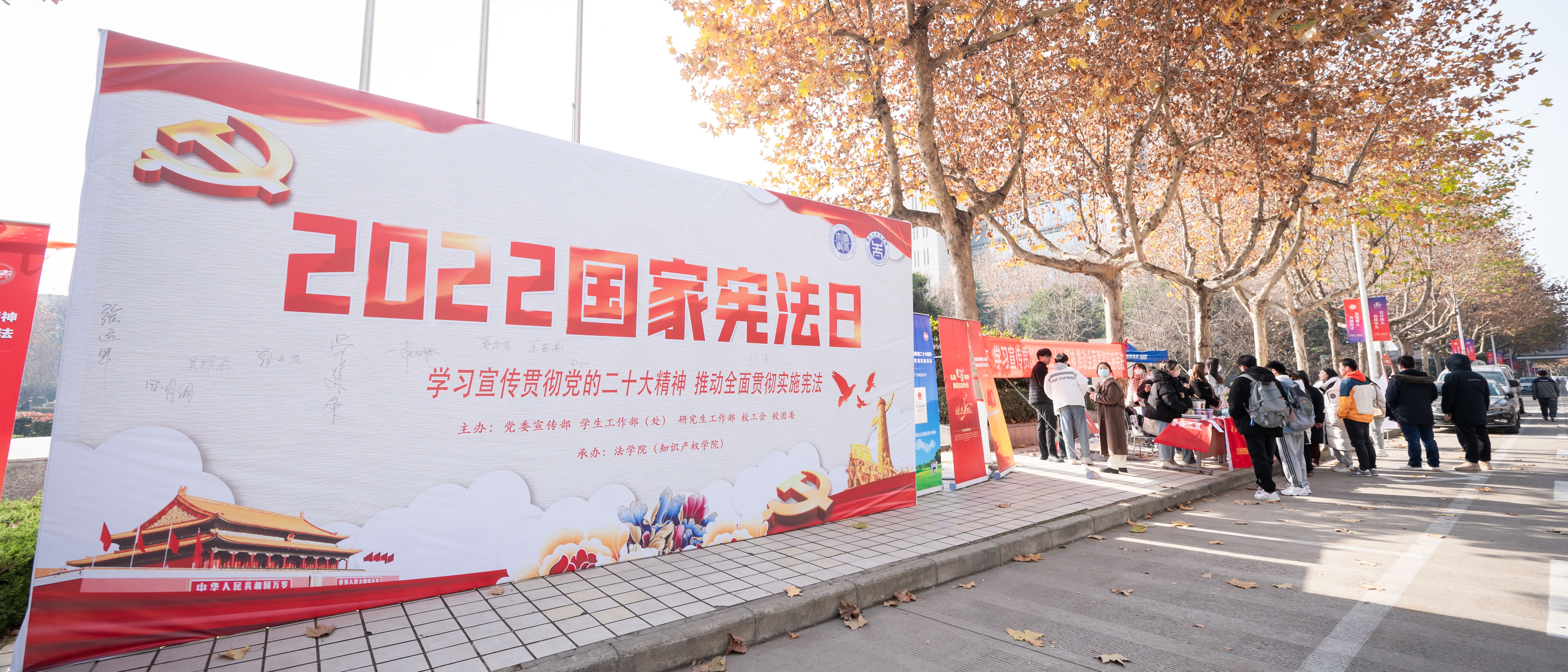 为学习贯彻党的二十大精神,推动全面贯彻实施宪法,乐鱼网页版页面登录连续九年开展“铸·法中国——宪法日”系列活动,培养全体师生知法、守法、信法、用法的能力,让全体师生成为社会主义法治的忠实崇尚者、自觉遵守者和坚定捍卫者。12月2日,学校举办了“知宪明法,与宪同行”普法宣传活动。本次活动以“学习宣传贯彻党的二十大精神,推动全面贯彻实施宪法”为主题,以“宪法法条我知道”“宪法知识快问快答”“签名仪式”等为抓手,利用横...