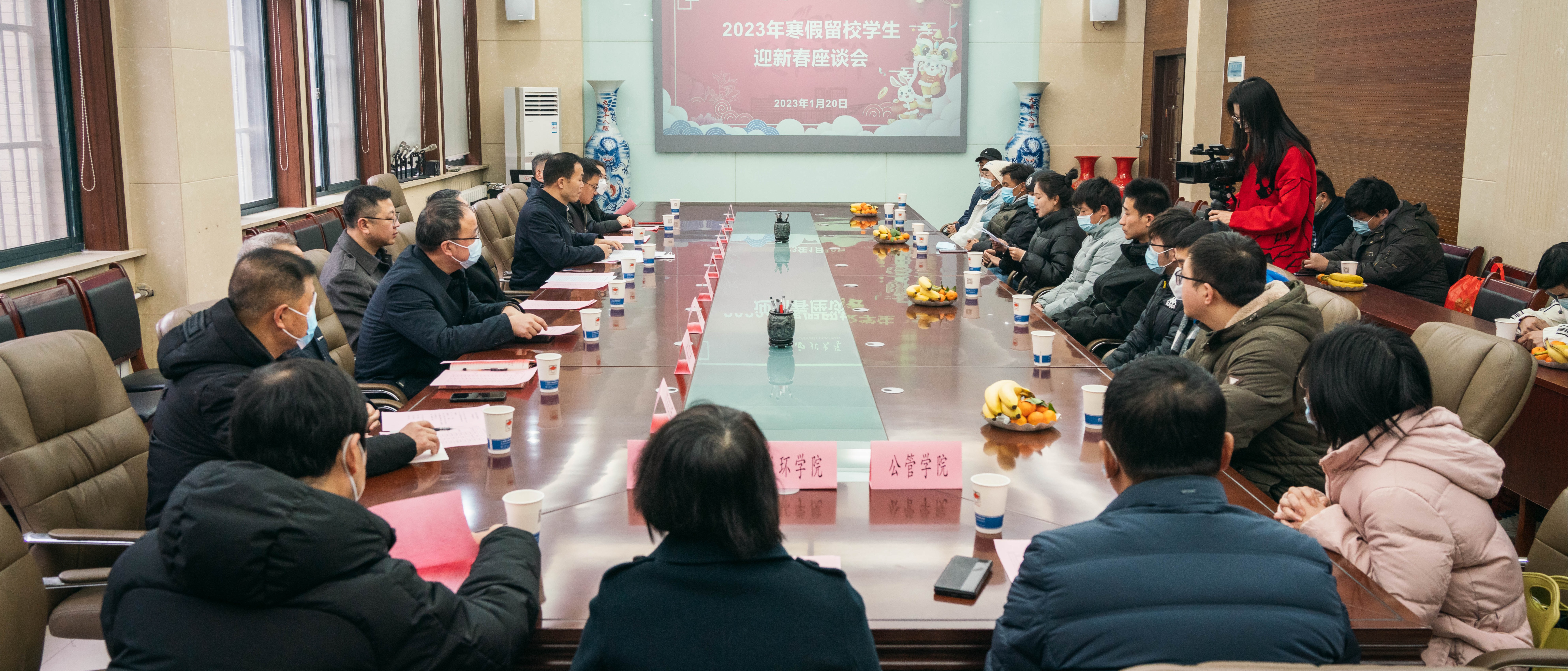 1月20日,乐鱼网页版页面登录举办了寒假留校学生迎新春座谈会,校长郭立宏出席会议并讲话。党(校)办、学工部、研工部、校团委、保卫处、后勤集团、校医院等部门和相关学院负责人及留校学生参加了会议。座谈会由校党委副书记吕建荣主持。郭立宏为留校学生发放了新春慰问大礼包并合影留念。后勤集团、保卫处、校医院负责人对春节假期的服务保障工作作了说明。公共管理学院本科生哈吾沙合·阿以登和化学与材料科学学院研究生钱军怡代表留校学生...