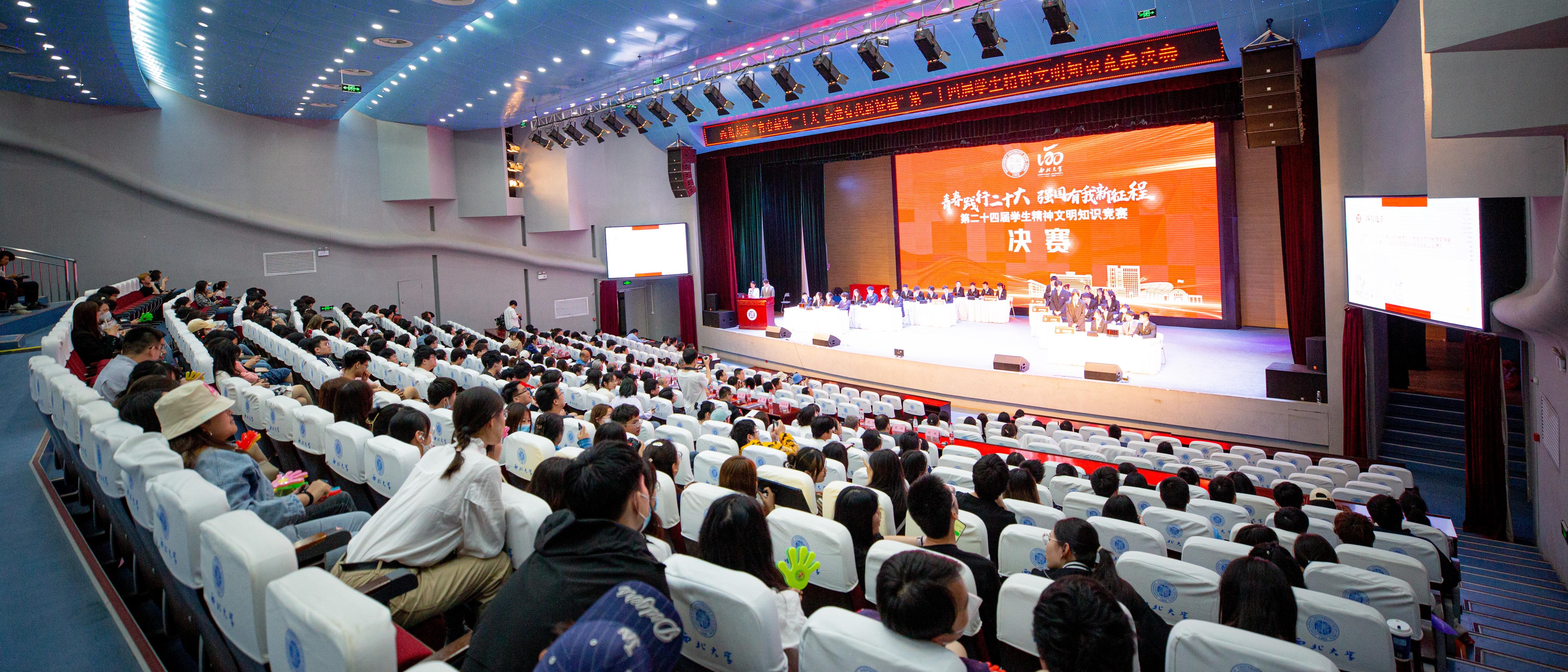4月20日,由学生工作部(处)、教务处、校团委共同主办的“青春践行二十大强国有我新征程”第二十四届学生精神文明知识竞赛决赛在长安校区举行。校党委副书记吕建荣,学生工作领导小组成员单位负责人以及院系学生工作负责人、辅导员代表、学生代表400余人在现场观看了此次决赛。本届知识竞赛初赛以“易班”平台线上答题的方式进行,实现了全体本科一、二年级100%学生全覆盖。各院(系)经过复赛的激烈角逐,最终历史学院、文化...