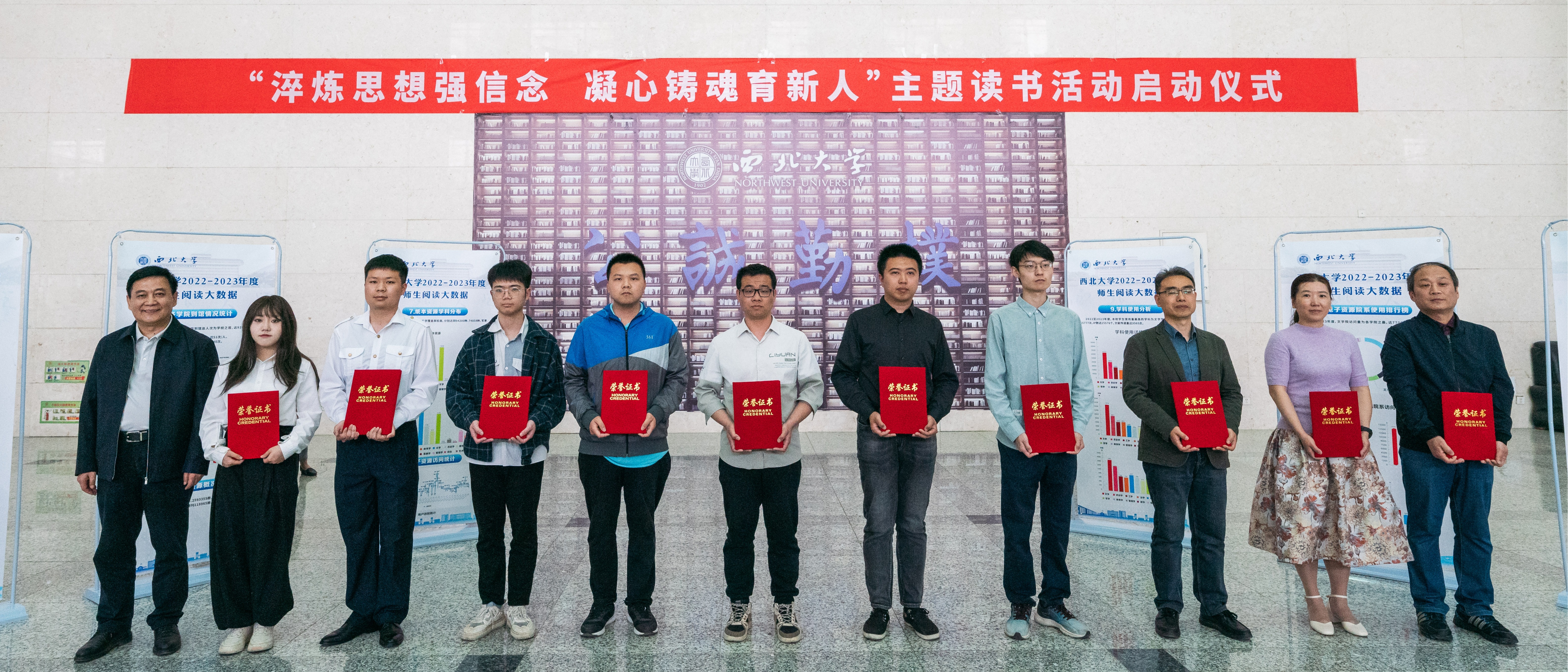 4月20日下午,学校在长安校区举办“淬炼思想强信念 凝心铸魂育新人”主题读书活动启动仪式。校党委书记王亚杰,党(校)办、组织部、教工部、学工部、研工部、校工会、校团委、图书馆、离退休处、出版社、期刊管理中心负责人和各单位师生代表参加了活动。启动仪式由校党委常委、宣传部部长田明纲主持。活动中,图书馆负责人发布了2022-2023年度师生阅读大数据。学校根据阅读大数据评选出10名年度师生“阅读之星”,王亚杰为师生...