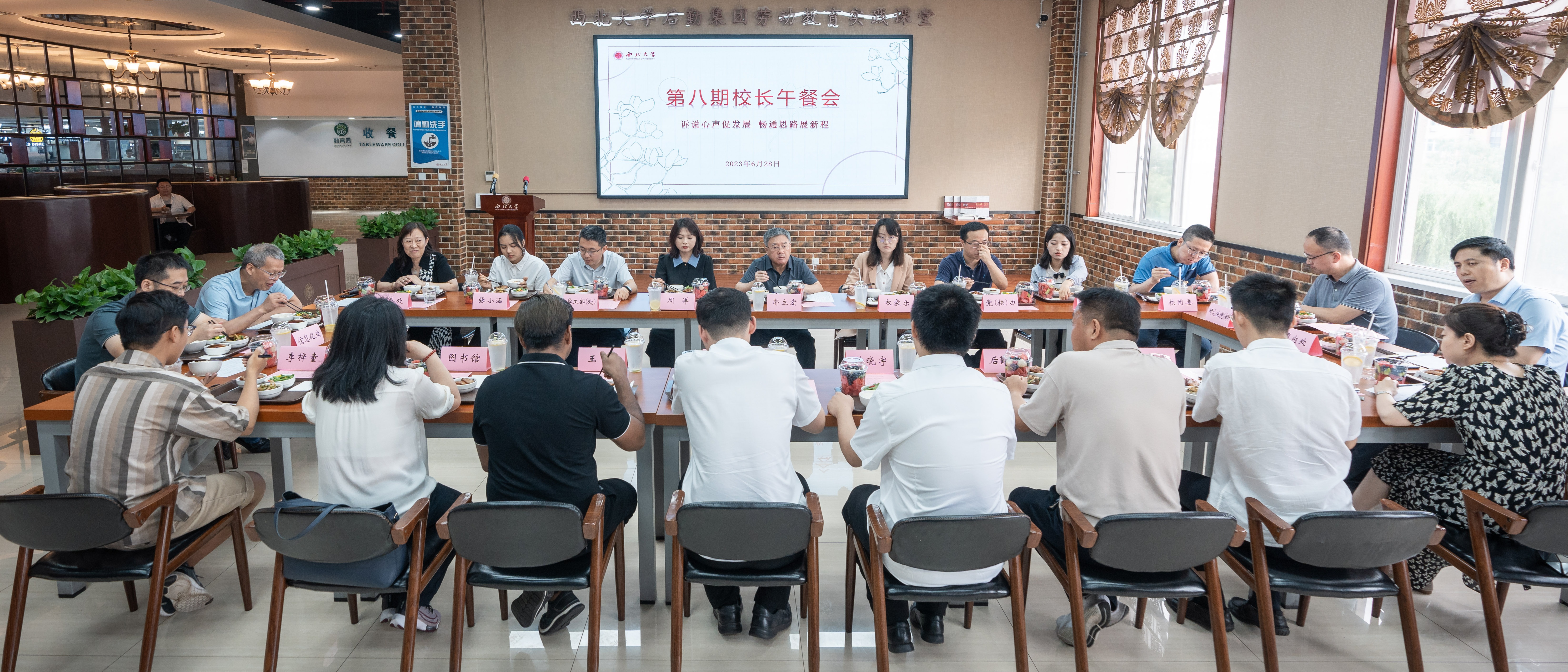 6月28日,第八期校长午餐会在长安校区举办。校长郭立宏和8位毕业生代表共谈大学成长和未来发展。党(校)办、学工部(处)、校团委、教务处、研究生院(部)、 国际部(国际教育学院)、国内处、信息化处、体育部、图书馆、后勤集团负责人参加活动。午餐会由第八届学生校长助理权家乐主持。午餐会期间,同学们结合在西大成长的所感所悟,向学校多年的精心栽培表示了感谢,并围绕个人成长、升学就业、校友工作、校园生活服务等方...