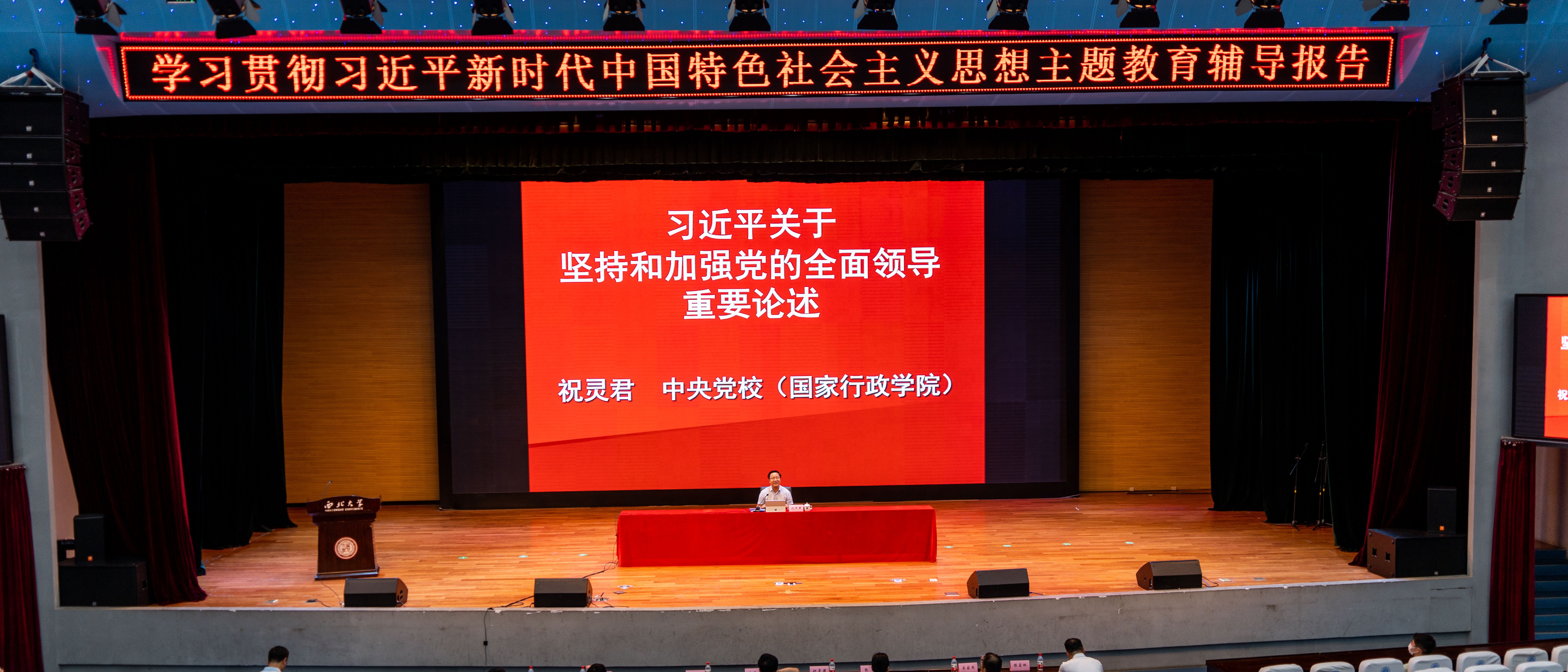 6月29日上午,学校在长安校区举办主题教育辅导报告。特邀中央党校(国家行政学院)祝灵君教授来校为师生作“习近平总书记关于坚持和加强党的全面领导的重要论述”主题报告。全体在校校领导、全校副处级以上领导干部、党支部书记培训班学员400余人参加了报告会。报告会由校党委书记王亚杰主持。祝灵君从党的领导是全面的系统的整体的,必须全面系统整体加以落实,党的领导是中国特色社会主义最本质的特征,坚持党中央集中统一领...