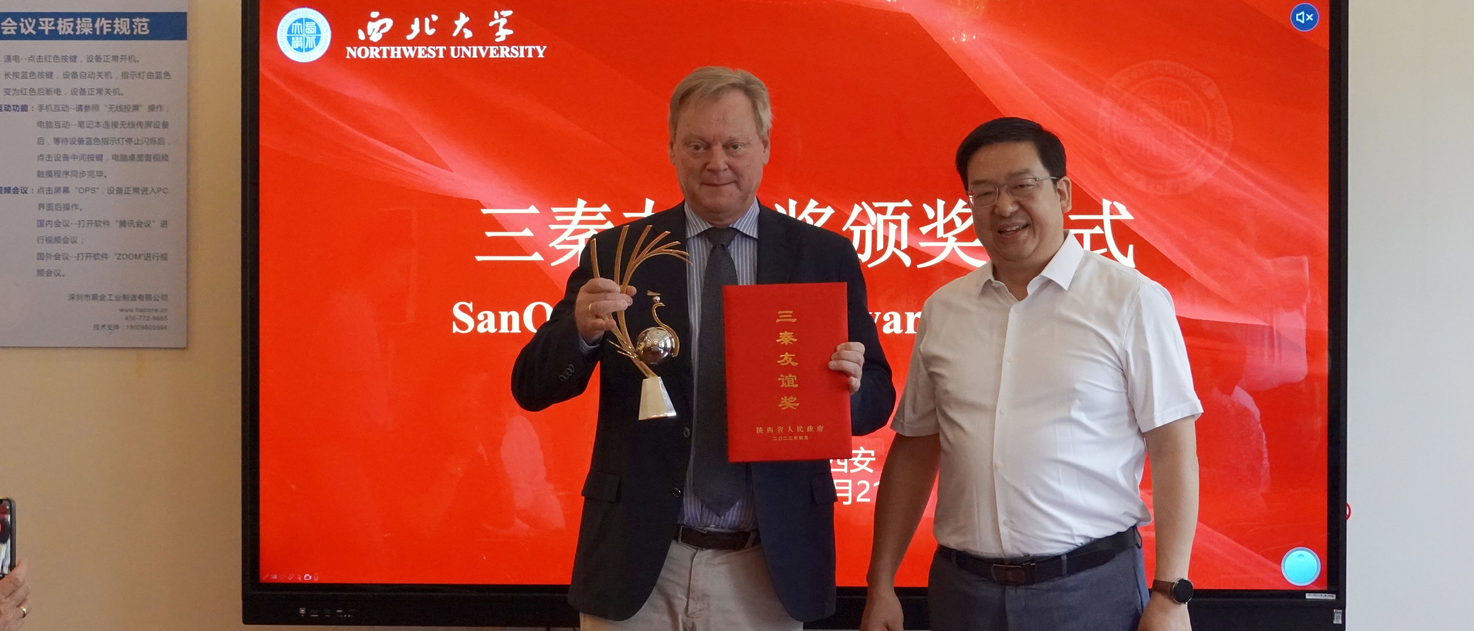 7月21日上午,省科技厅(省外国专家局)副厅长白崇军一行来校为乐鱼网页版页面登录德国籍专家艾克·韩教授颁发2021年度陕西省“三秦友谊奖”。该奖项是陕西省人民政府授予在陕工作外国专家的最高奖项,旨在表彰在我省经济社会发展和促进中外合作交流中作出突出贡献的外国专家。校党委常委、副校长赖绍聪出席颁奖仪式并致辞,国际部、人才办、化材学院负责人参会,颁奖仪式由国际部负责人主持。赖绍聪在致辞中向艾克·韩教授表示祝贺,对省科技厅...