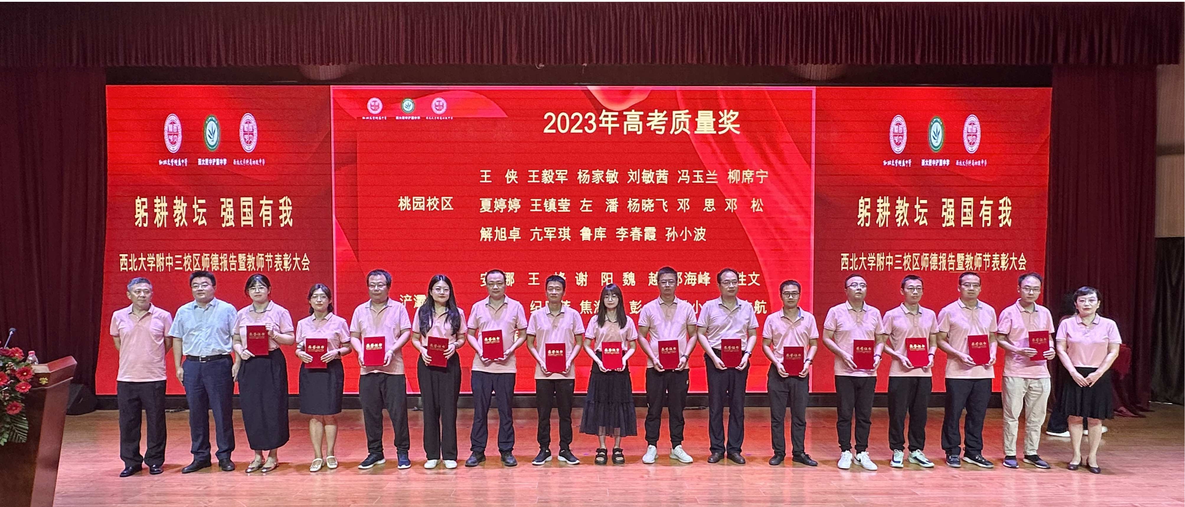 9月9日,乐鱼网页版页面登录附中在西大附中浐灞中学图书馆报告厅举办以“躬耕教坛 强国有我”为主题的师德报告暨教师节表彰大会。附中桃园、浐灞、长安三校区350余名教师和退休教师代表参加了大会。校党委常委、副校长吴振磊出席大会并为获奖教师颁奖。会议对近几年在教育教学、管理服务、疫情防控等方面做出突出贡献的教师进行了表彰奖励。陕西省教科院党总支书记、副院长吴积军应邀为与会教师作了题为“坚守教育初心担当时代使命”的专题...