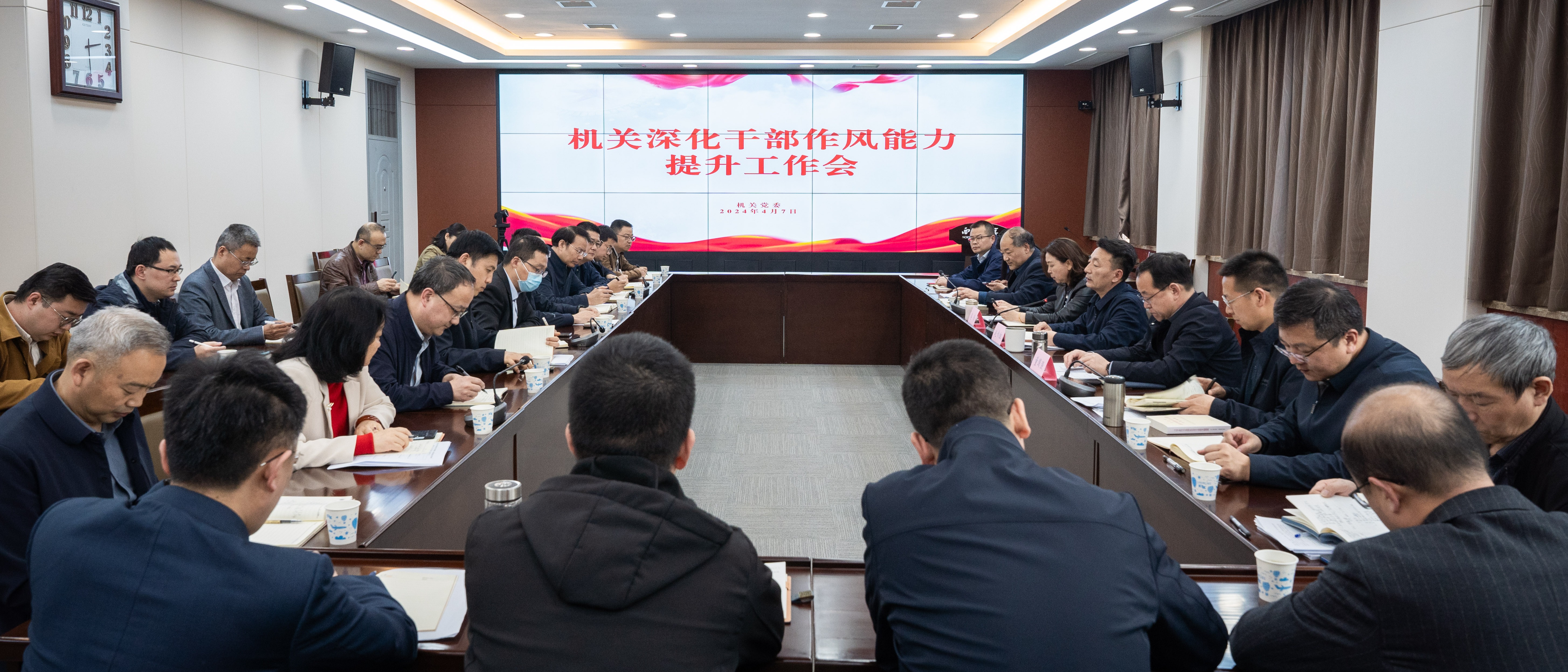 4月7日,机关深化干部作风能力提升工作会在长安校区召开。校党委副书记赵作纽,机关党委委员、各支部书记参加会议。第四巡察组负责人列席会议。与会人员学习了《习近平新时代中国特色社会主义思想专题摘编》中关于“作风建设永远在路上”的重要论述。机关党委负责人通报了机关党委巡察工作中自查问题的相关情况,从“持续强化理论武装,提升政治能力和工作能力”“持续强化支部建设,提升引领力和战斗力”“全面推进从严治党向...
