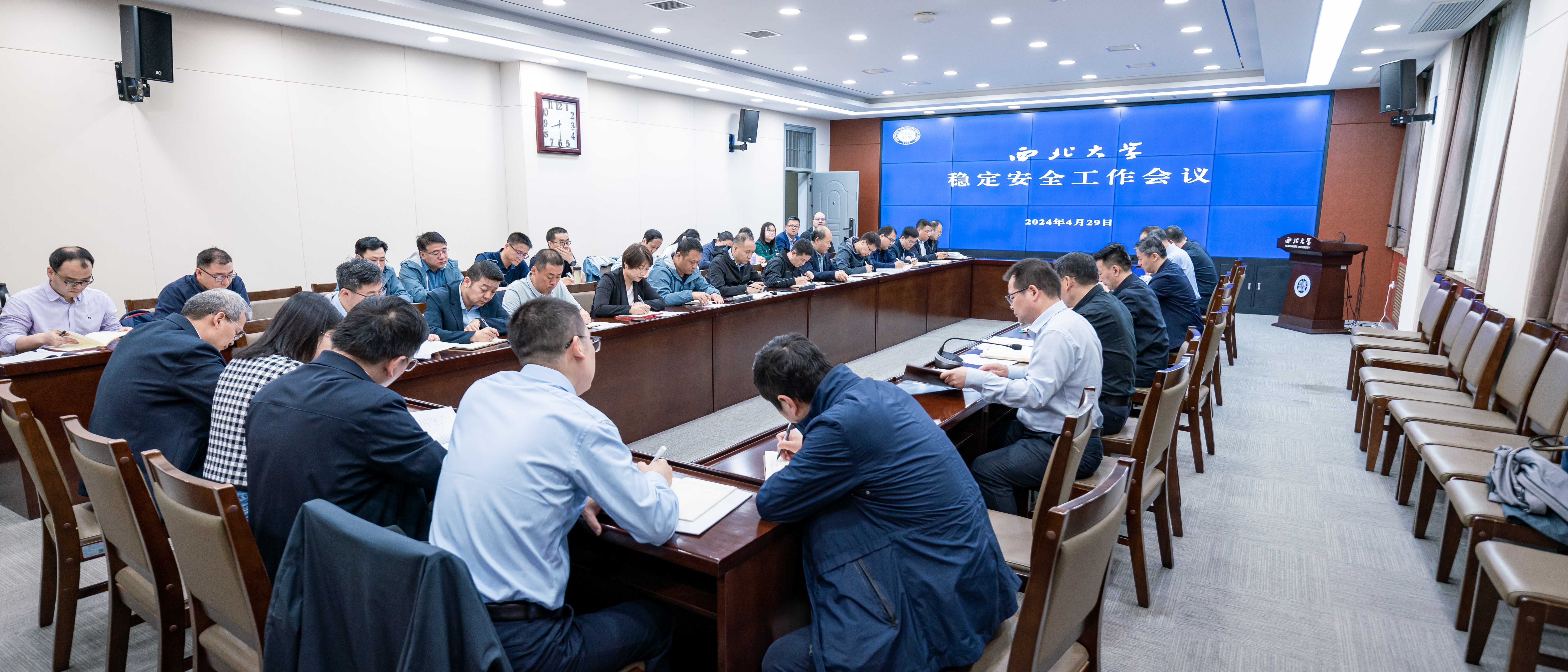 4月29日上午,学校在长安校区召开稳定安全工作会议,传达学习上级会议和最新文件精神,安排部署下一阶段稳定安全和安全生产工作。校党委书记蒋林、校党委副书记赵作纽,稳定安全办公室成员单位负责人,各院(系)学生工作负责人参加会议。会议由校党委副书记吕建荣主持。会上,稳定办负责人传达了省委教育工委关于开展教育系统安全稳定工作督查、校园安全稳定风险预警文件精神,学工部负责人传达了省委教育工委关于进一步加强学...