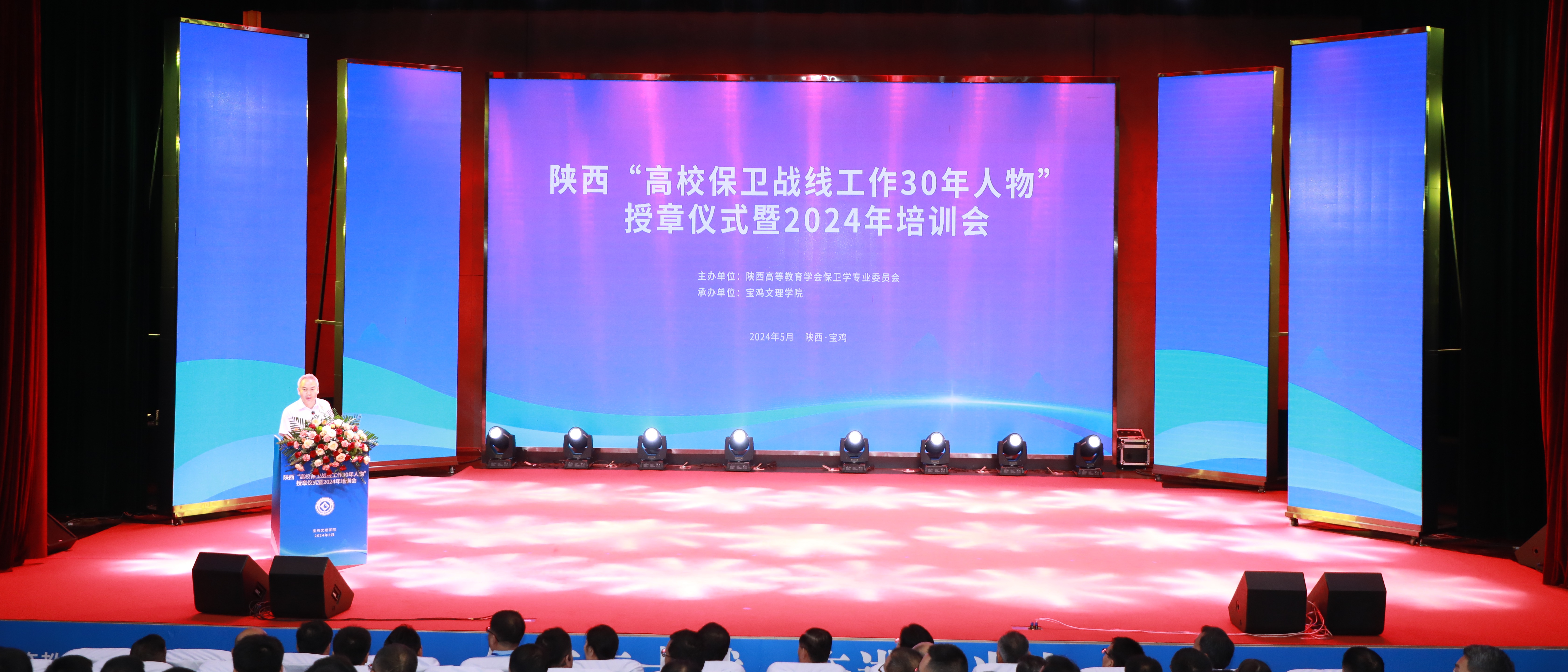 5月30日上午,由乐鱼网页版页面登录作为陕西高等教育学会保卫学专业委员会理事长单位主办的陕西“高校保卫战线工作30年人物”授章仪式在宝鸡举行。乐鱼网页版页面登录党委副书记赵作纽出席活动并为授章代表颁发奖杯和荣誉证书。乐鱼网页版页面登录党委保卫部雷林刚、秦晓宏获颁“高校保卫战线工作30年人物”纪念章。活动以“矢志三十载·奋进勇当先”为主题,陕西省委教育工委稳定办主任任正旺、宝鸡文理学院校长郭霄鹏、党委副书记韩干校,中国高等教育学会保卫学专业委员...