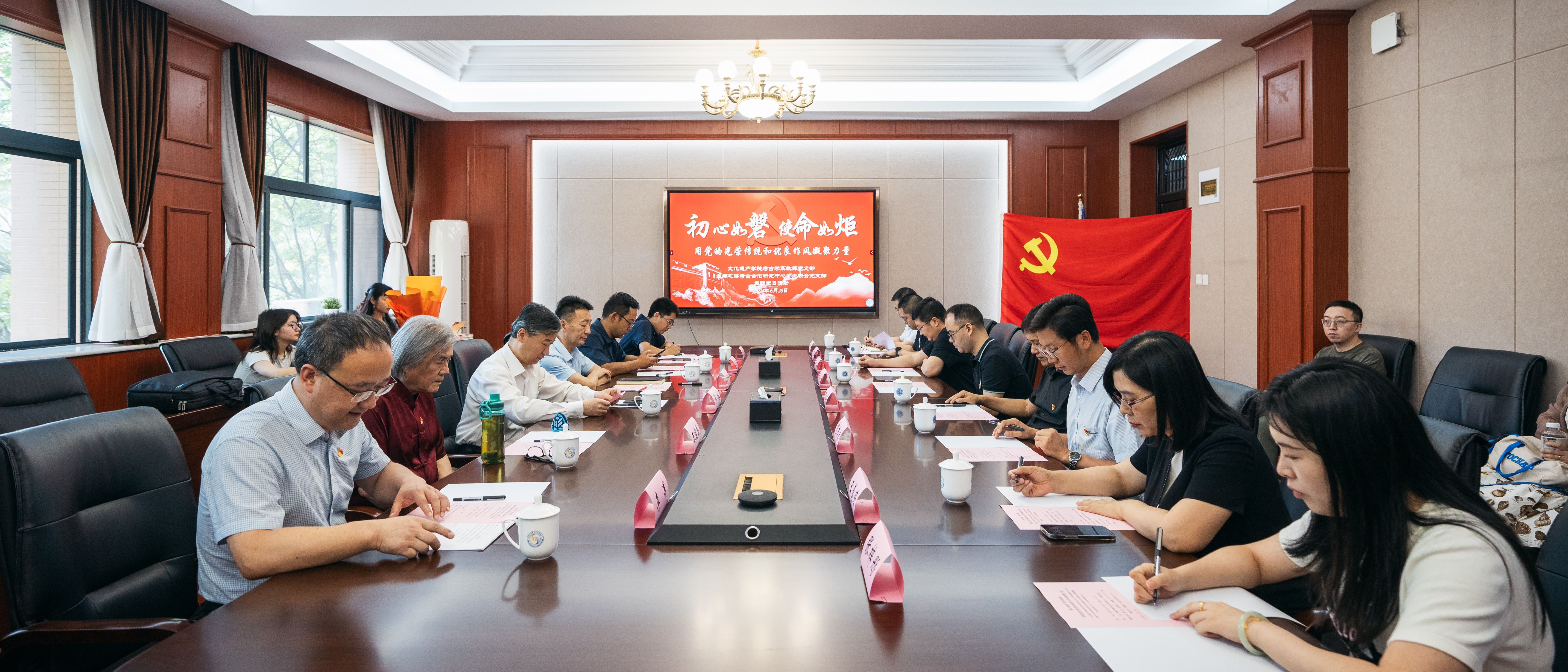 6月28日,文化遗产学院考古学系教师党支部、丝绸之路考古合作研究中心师生联合党支部主题党日活动暨王建新教授“光荣在党50年”纪念章颁发仪式在长安校区举行。活动以“初心如磐 使命如炬,用党的光荣传统和优良作风凝聚力量”为主题,校党委书记蒋林,校党委副书记赵作纽,乐鱼网页版页面登录中亚考古队队长、丝绸之路考古合作研究中心首席科学家王建新教授,组织部、文化遗产学院、丝绸之路考古中心相关负责人及16名支部党员参加仪式,...