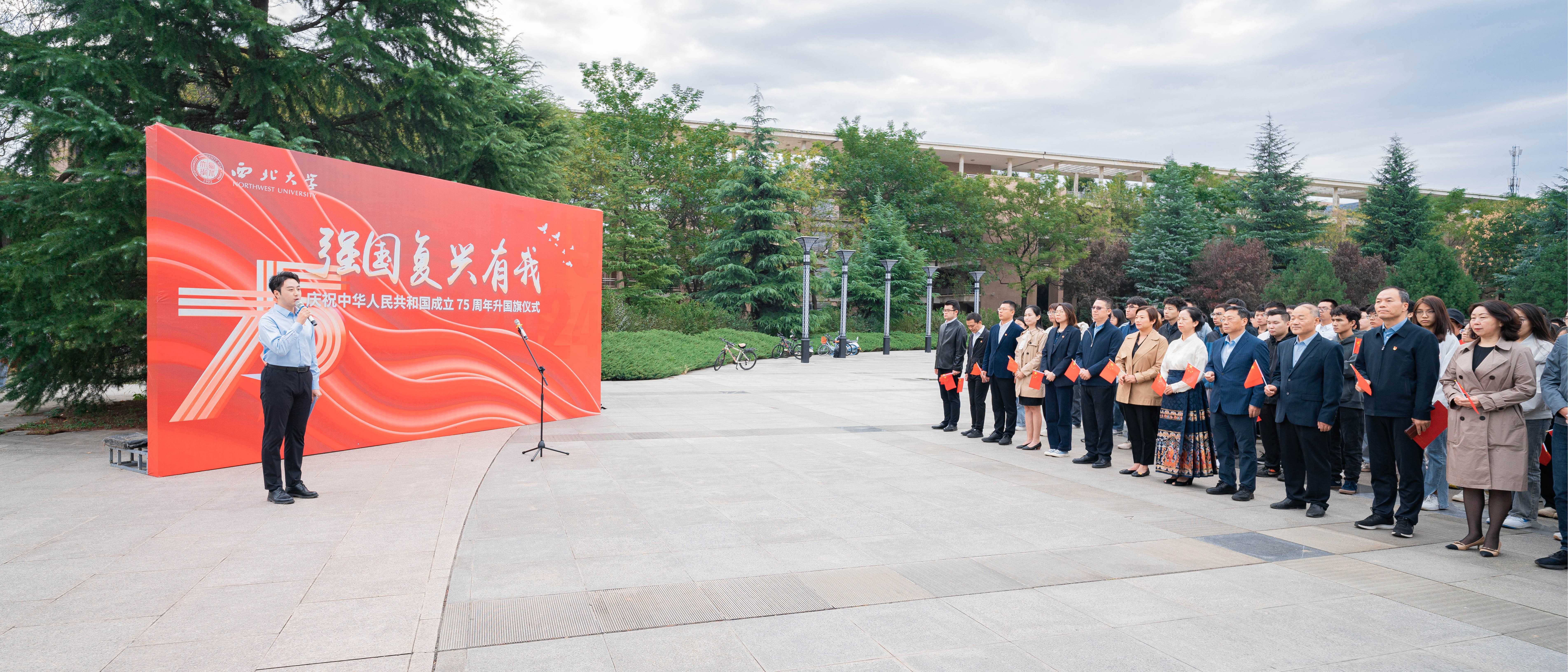 10月1日清晨,“强国复兴有我”庆祝中华人民共和国成立75周年升国旗仪式在长安校区中心广场举行。校党委副书记吕建荣,学校相关单位负责人、学生代表等600余人到场观礼。早晨8点,国旗护卫队的队员们喊着嘹亮的口号,迈着铿锵有力的步伐,护送国旗入场。伴随着雄壮的国歌声,五星红旗在师生的注目礼中冉冉升起。国旗在微风中飘扬,澎湃的爱国之情在每一位观礼师生的心中激荡。乐鱼网页版页面登录“青年先锋宣讲团”成员、马克思主义学院2023级...