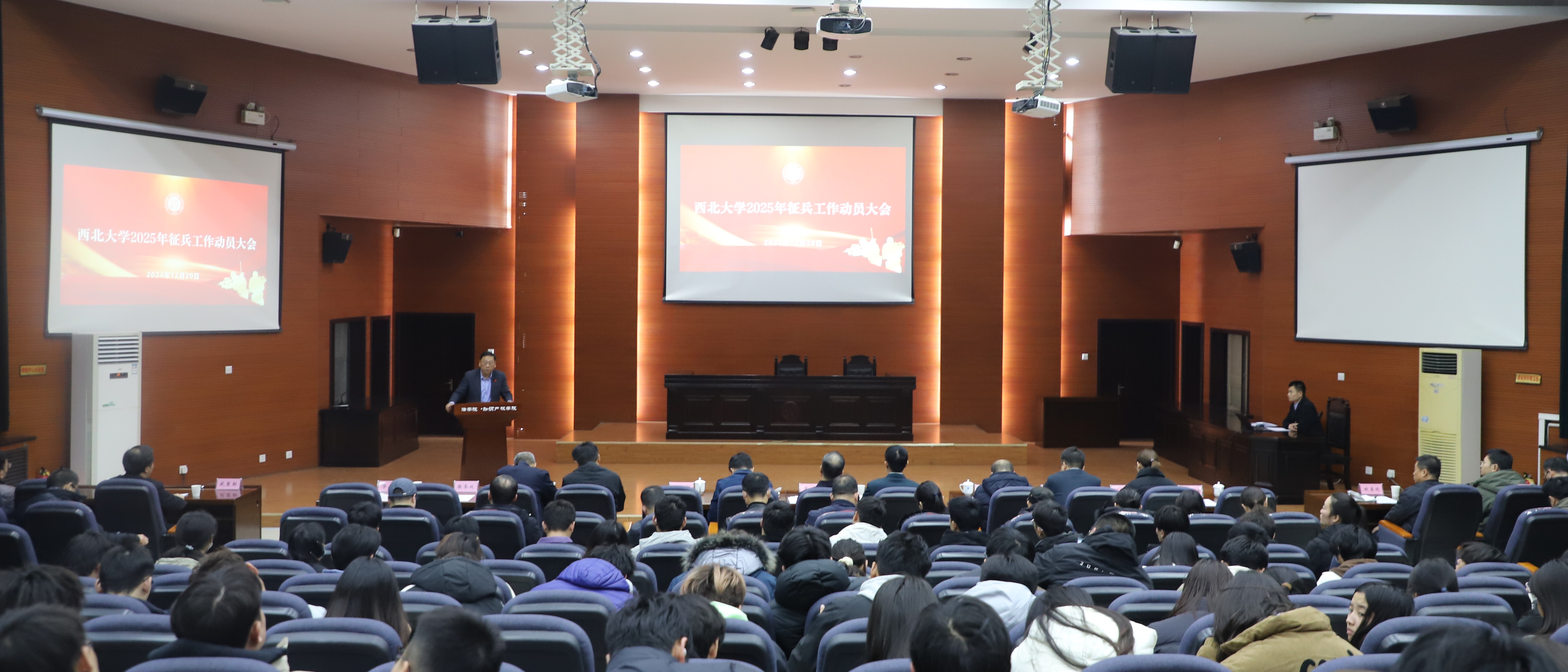 12月20日下午,乐鱼网页版页面登录在长安校区召开乐鱼网页版页面登录2025年征兵工作动员大会。校党委副书记吕建荣,碑林区武装部部长王茂生、副部长寇军红,学校征兵工作站成员单位负责人、各院(系)党委副书记、学生代表200余名参加了动员大会。会议由学生工作部(处)负责人主持。乐鱼网页版页面登录武装部负责人汇报了2024年征兵工作情况,通报了2024年征兵工作绩效考评情况和2024年兵役登记情况,并安排部署了2025年征兵工作。吕建荣、王茂生共同为学校10名退役大...