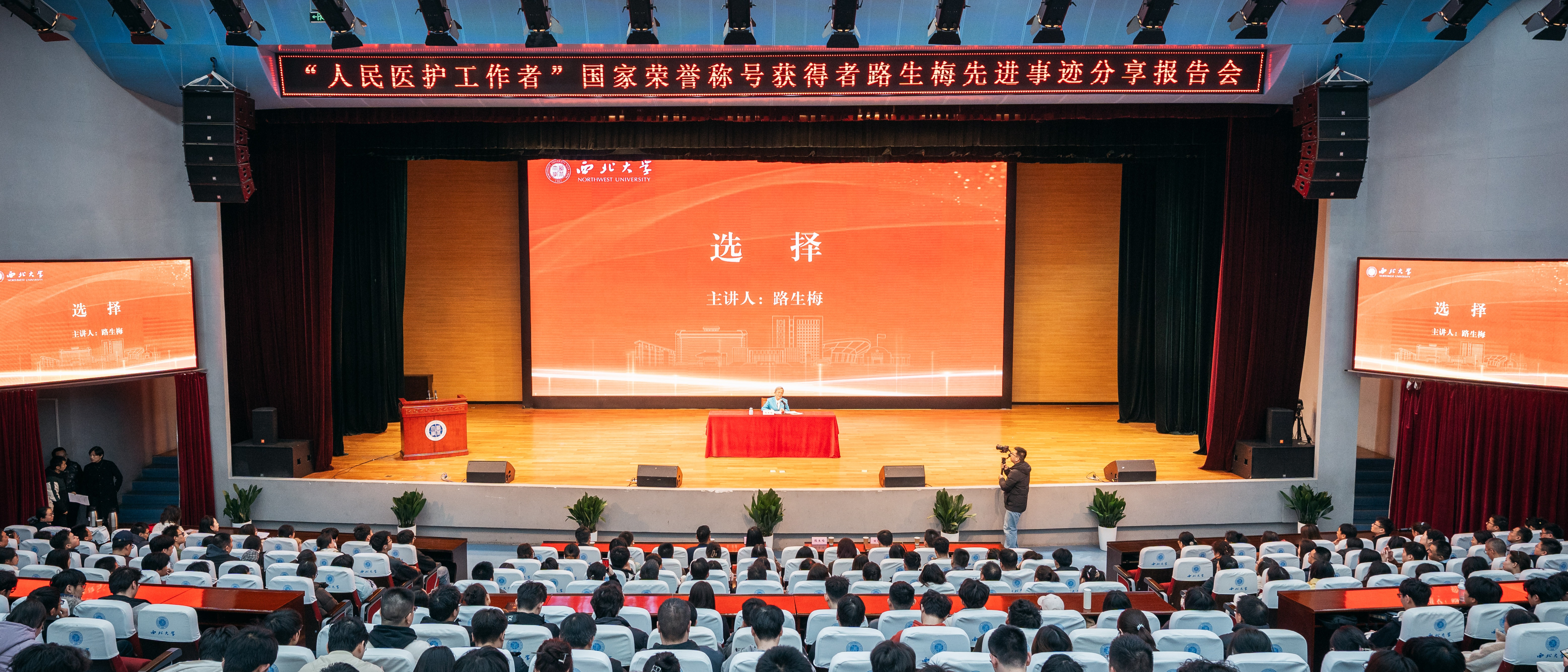 “为佳县人民服务56年,我无怨无悔”,“人民医护工作者”国家荣誉称号获得者路生梅的声音在乐鱼网页版页面登录长安校区学生活动中心回荡,温柔而又坚定……一句承诺,半生坚守,行医路上梅生香。2月27日下午,佳县人民医院原副院长、主任医师,党的二十大代表,中国好人、全国三八红旗手标兵、全国优秀共产党员、全国诚实守信模范、全国离退休干部先进个人路生梅,受邀来校为师生作报告。校长孙庆伟报告会开始前会见了路生梅。报告会由校...