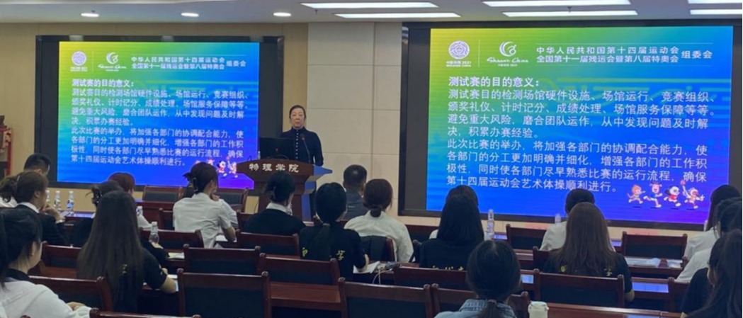 6月17日,第十四届全国运动会艺术体操项目辅助裁判员和竞赛专业志愿者培训班在乐鱼网页版页面登录长安校区举办。校党委常委、副校长、十四运会艺术体操项目竞赛委员会执行主任奚家米主持开班仪式。国家体育总局体操运动管理中心艺术体操部部长、十四运会艺术体操竞委会的副主任张莹,陕西省体操运动管理中心及乐鱼网页版页面登录相关单位负责人参加开班仪式。十四运会艺术体操项目辅助裁判员、专业志愿者约120人参加了此次培训。张莹在培训中从竞赛内容和岗...