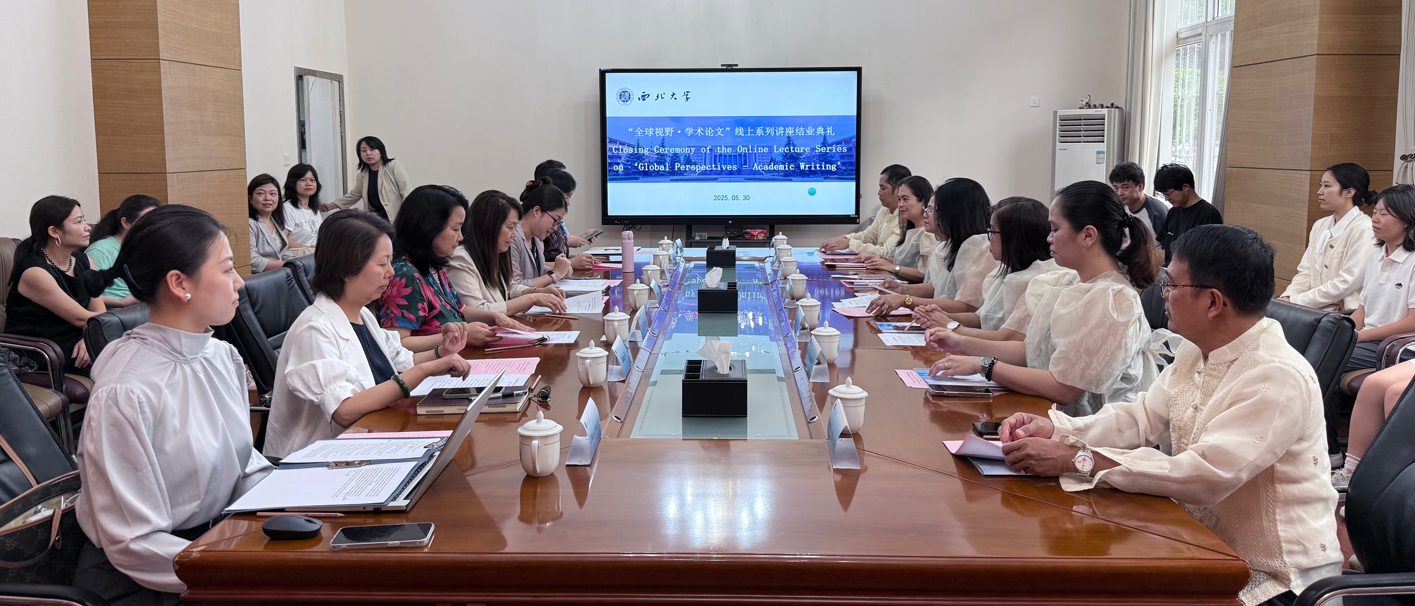 由乐鱼网页版页面登录与菲律宾布拉卡国立大学联合举办的“全球视野·学术论文”线上系列讲座圆满收官,5月30日下午,两校在太白校区共同举办结业典礼。乐鱼网页版页面登录党委常委、副校长范代娣、菲律宾布拉卡国立大学研究生院副院长莱奥诺拉·德·热苏斯博士出席结业典礼并致辞,菲律宾布拉卡国立大学系列讲座6位主讲嘉宾,乐鱼网页版页面登录国际合作部(国际教育学院)负责人、菲律宾布拉卡国立大学孔子学院中方院长及参加讲座培训的23名师生参加了典礼。典礼由国际教育学...