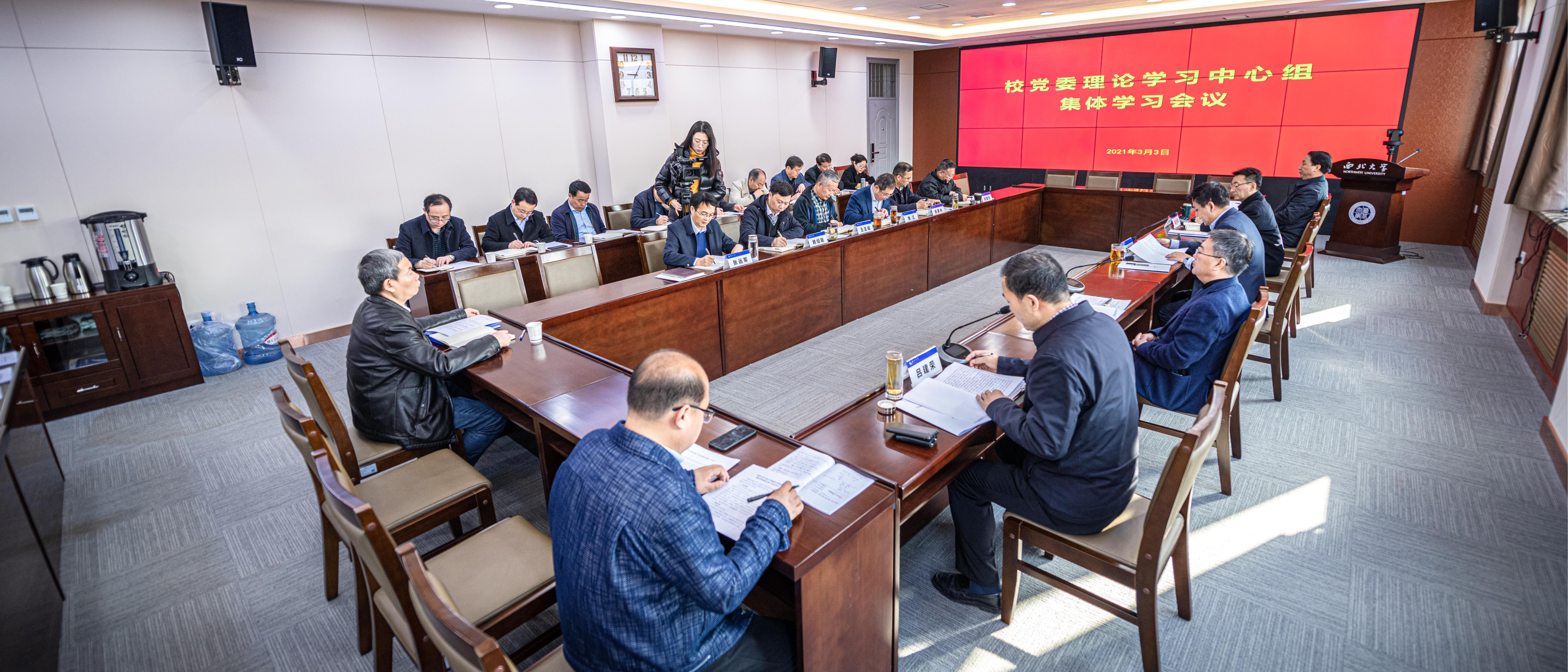 3月3日,校党委理论学习中心组在长安校区召开集体学习会议。会议由校党委书记王亚杰主持。校党委理论学习中心组成员参加了学习。会上,王亚杰传达了习近平总书记在党史学习教育动员大会上的重要讲话精神,省委书记刘国中同志在全省党史学习教育动员大会上的讲话精神、在会见陕西省第七批“三秦楷模”时的讲话精神。校党委副书记、校长郭立宏领学了习近平总书记在全国脱贫攻坚总结表彰大会上的重要讲话。校党委副书记赵作纽领学...