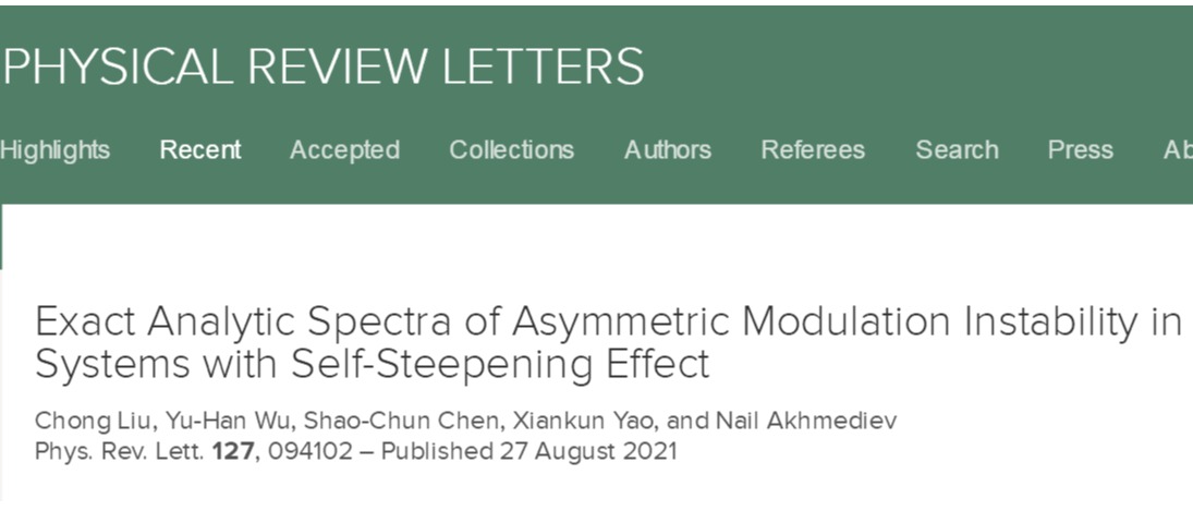 近日,乐鱼网页版页面登录理论物理团队成员刘冲副教授与合作者基于实验上可实现的可积模型,通过精确理论和数值模拟首次揭示了广泛存在的非对称调制不稳定性的严格物理图景,给出了精确描述该类不稳定性非线性演化性质和规律的基本方法,为实现观测提供了基准。研究成果以“Exact Analytic Spectra of Asymmetric Modulation Instability in Systems with Self-Steepening Effect”为题,于8月27日发表在物理学专业领域公认的顶级期刊Physical...