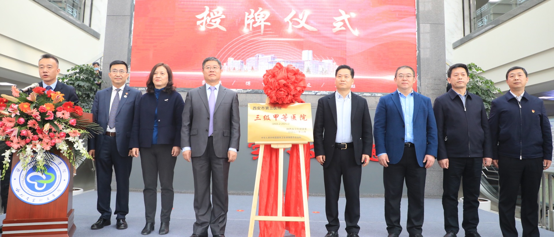 3月8日,乐鱼网页版页面登录附属医院·西安市第三医院举行三级甲等综合医院授牌仪式。陕西省卫健委副主任杨联昌,校党委常委、副校长常江,西安市卫健委主任刘顺智,陕西省卫健委医政医管局局长于春富,西安市卫健委副主任王红艳,学校相关单位负责人出席仪式。医院领导班子、全院中层、科室骨干以及各医联体成员单位代表参加了授牌仪式。仪式上,于春富宣读《关于评定西安市第三医院为三级甲等医院的批复》文件。常江与杨联昌、刘顺智等领...