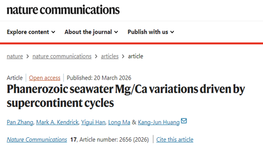 近日,乐鱼网页版页面登录早期生命与环境研究团队在国际著名期刊《自然·通讯》(Nature Communications)发表题为“Phanerozoic seawater Mg/Ca variations driven by supercontinent cycles”(超大陆旋回驱动显生宙海水镁钙比值演化)的研究论文。该研究运用数据整合与数值模拟方法,系统揭示了显生宙以来海水化学组成、海相沉积矿物类型、钙质生物壳体矿物相及地球长期气候演变之间的内在联系,并提出其背后存在统一的驱动机制。海洋覆...