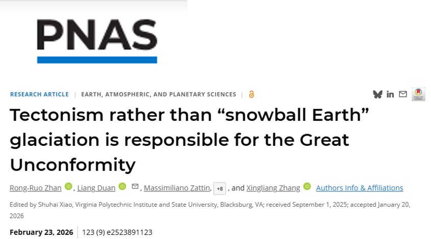 2月23日,乐鱼网页版页面登录早期生命与环境研究团队在《美国科学院院刊》(PNAS)上发表了题为“构造运动而非雪球地球时期的冰川作用造成全球大不整合(Tectonism rather than ‘Snowball Earth’ glaciation is responsible for the Great Unconformity)”的媒体关注和亮点文章,以全球视角破解了困扰科学界百年的地质谜题——全球“大不整合”的形成,并非此前认为的“雪球地球”冰川侵蚀。这一突破性发现,为理解地球演化与生命爆发的关...
