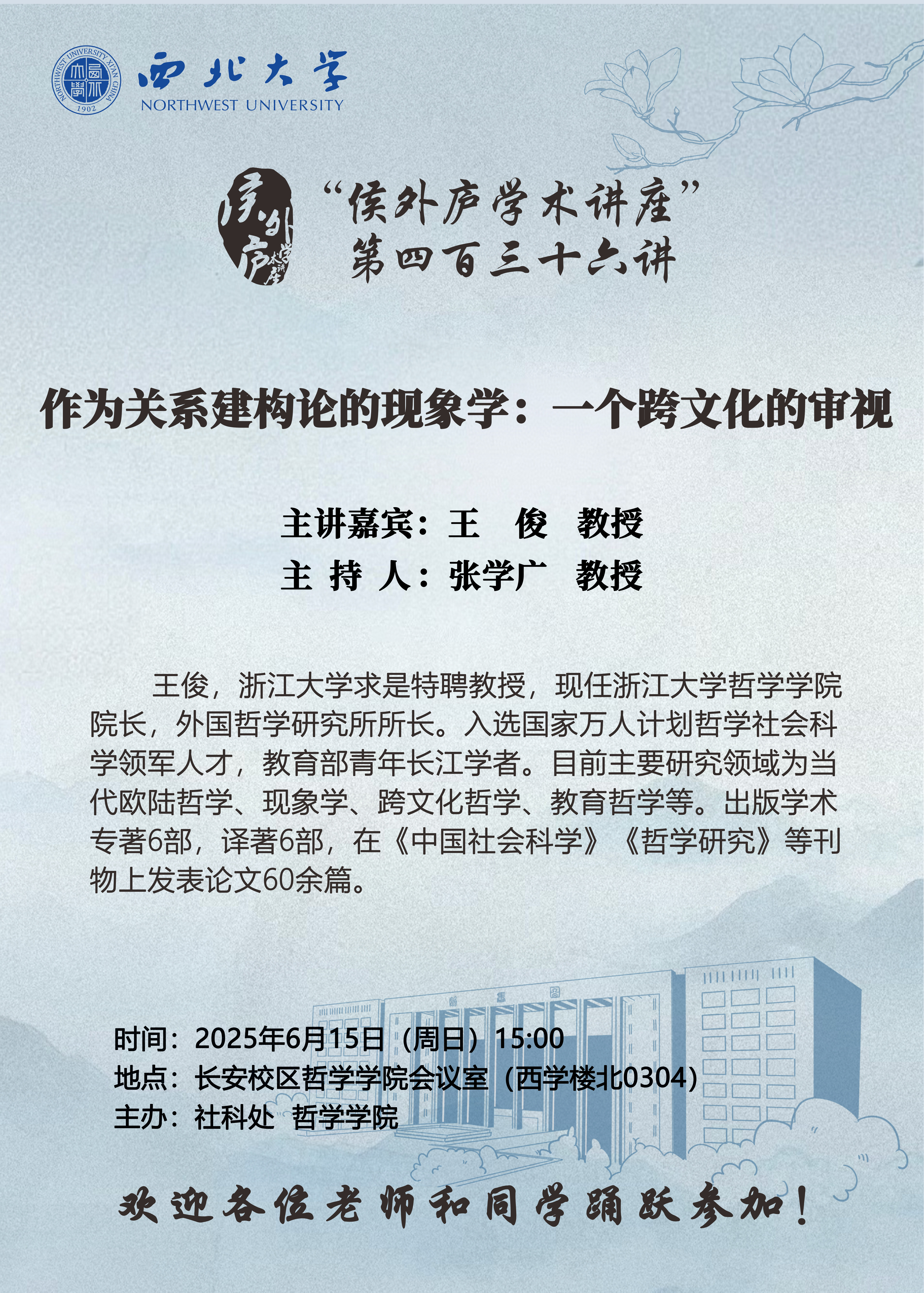 “侯外庐学术讲座”第四百三十六讲:作为关系建构论的现象学:一个跨文化的审视