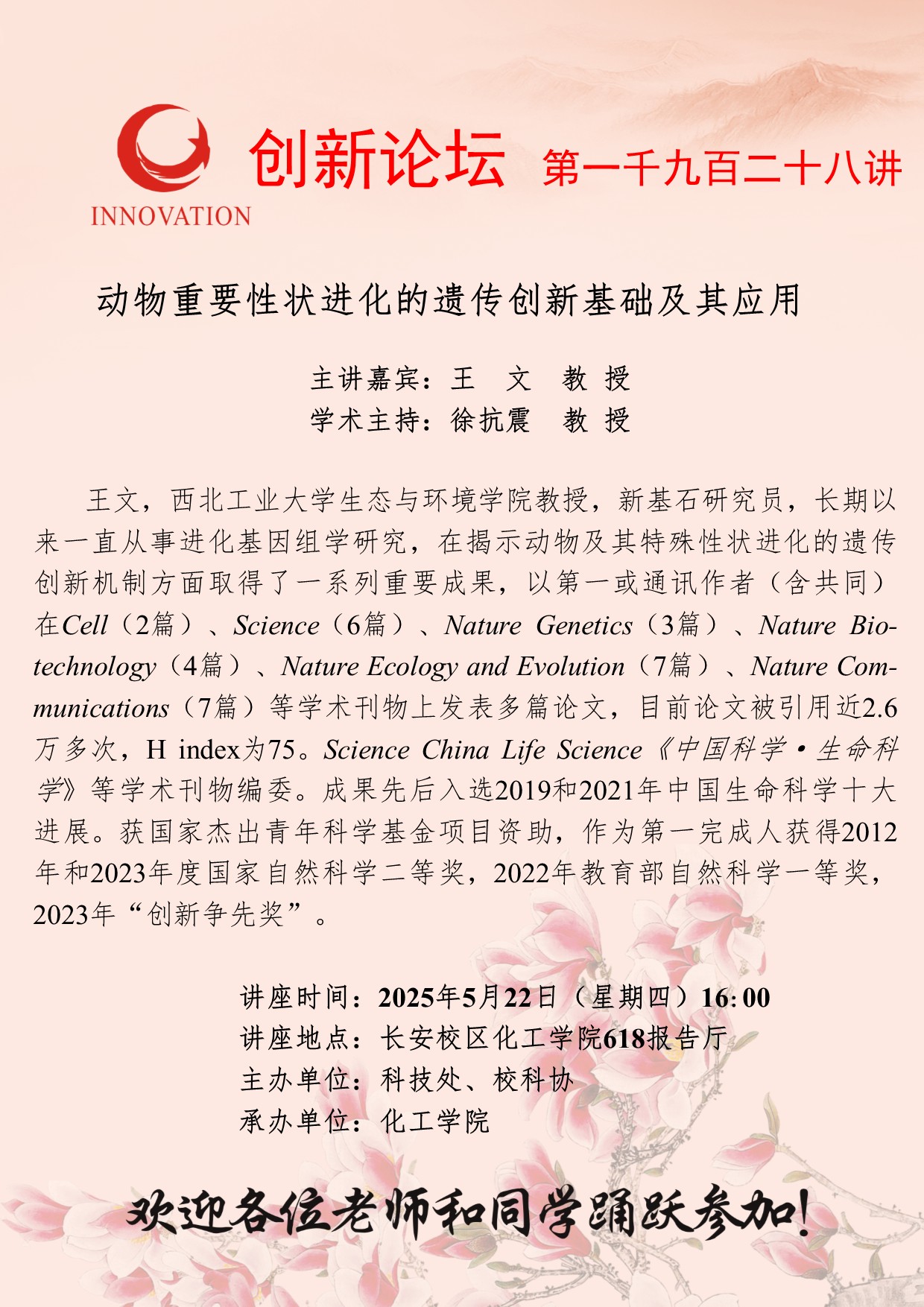 乐鱼网页版页面登录创新论坛第一千九百二十八讲:动物重要性状进化的遗传创新基础及其应用