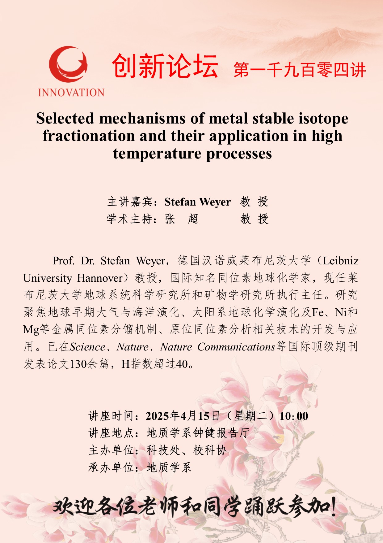 乐鱼网页版页面登录创新论坛第一千九百零四讲:Selected mechanisms of metal stable isotope fractionation and their application in high temperature processes