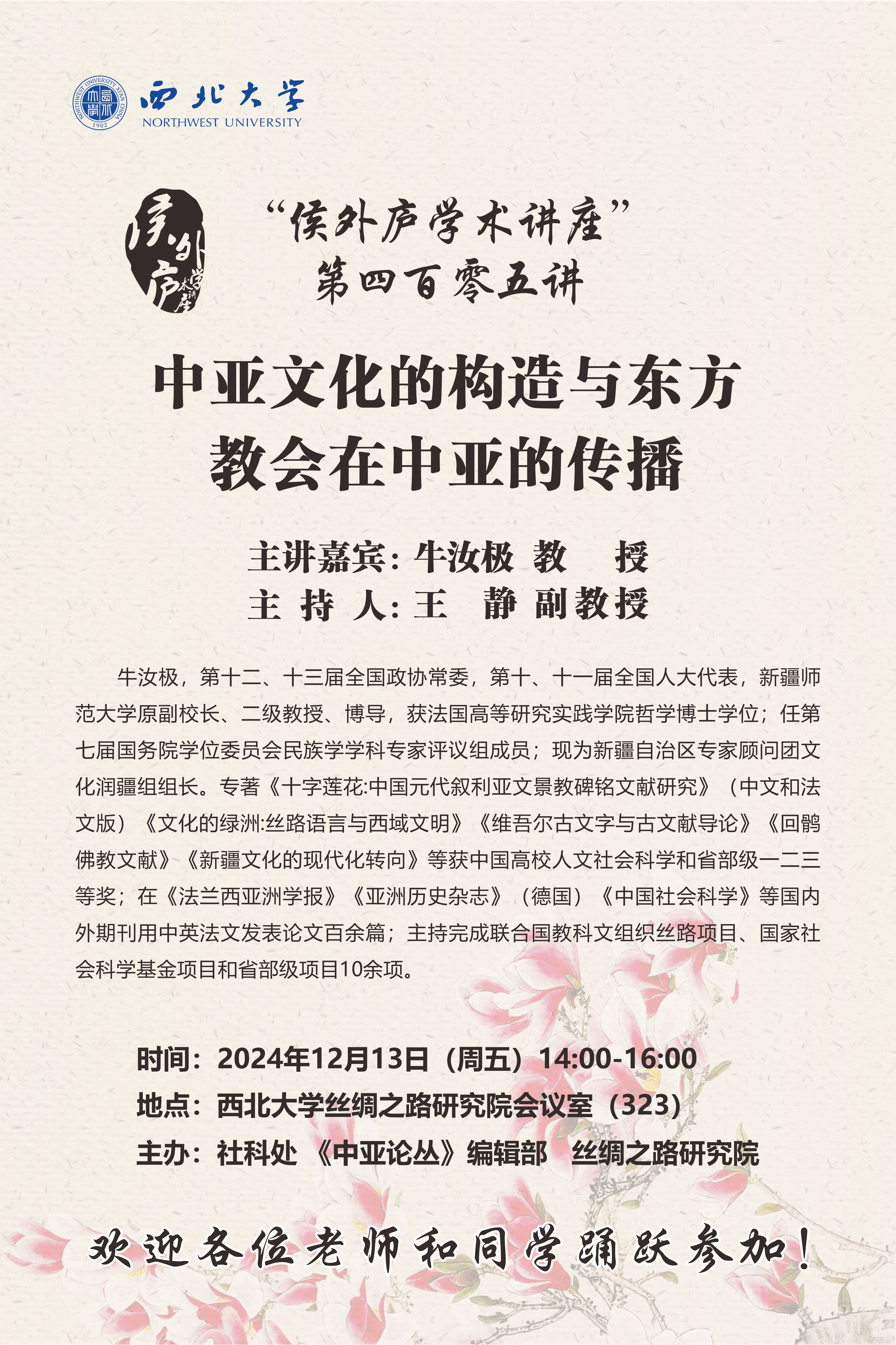 “侯外庐学术讲座”第四百零五讲:中亚文化的构造与东方教会在中亚的传播