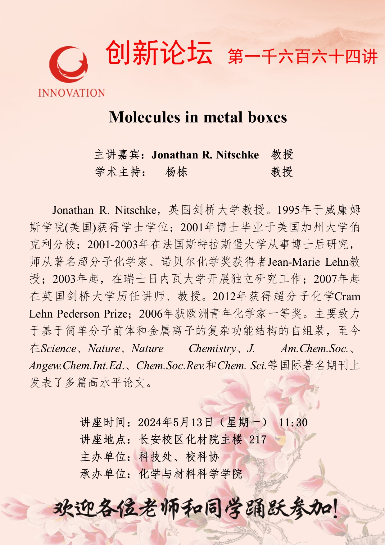 作者:Jonathan R. Nitschke 教授发布时间:2024-05-10阅读: