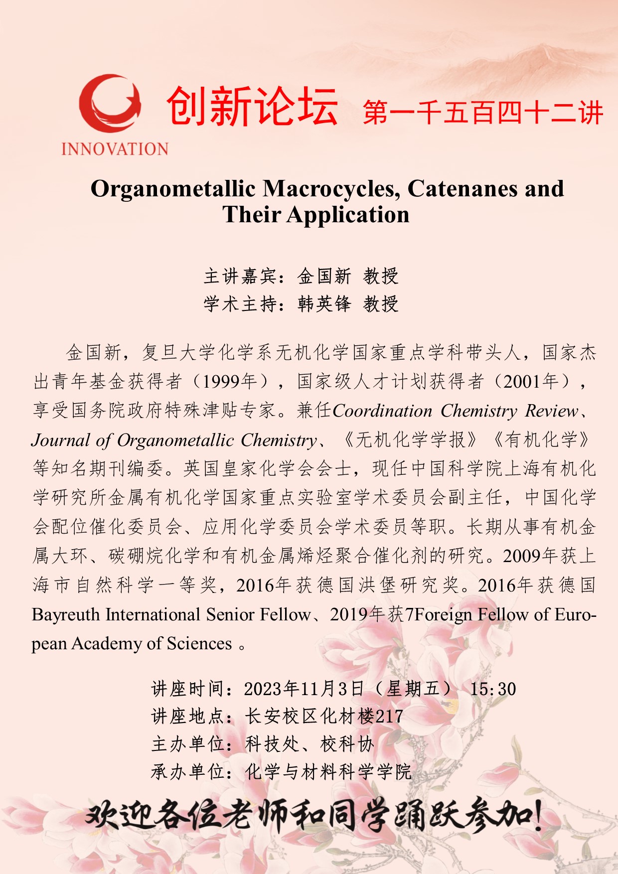 乐鱼网页版页面登录创新论坛第一千五百四十二讲:Organometallic Macrocycles, Catenanes and Their Application