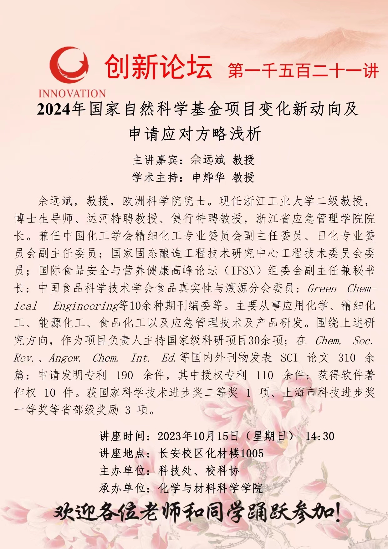 乐鱼网页版页面登录创新论坛第一千五百二十一讲: 2024年国家自然科学基金项目变化新动向及申请应对方略浅析