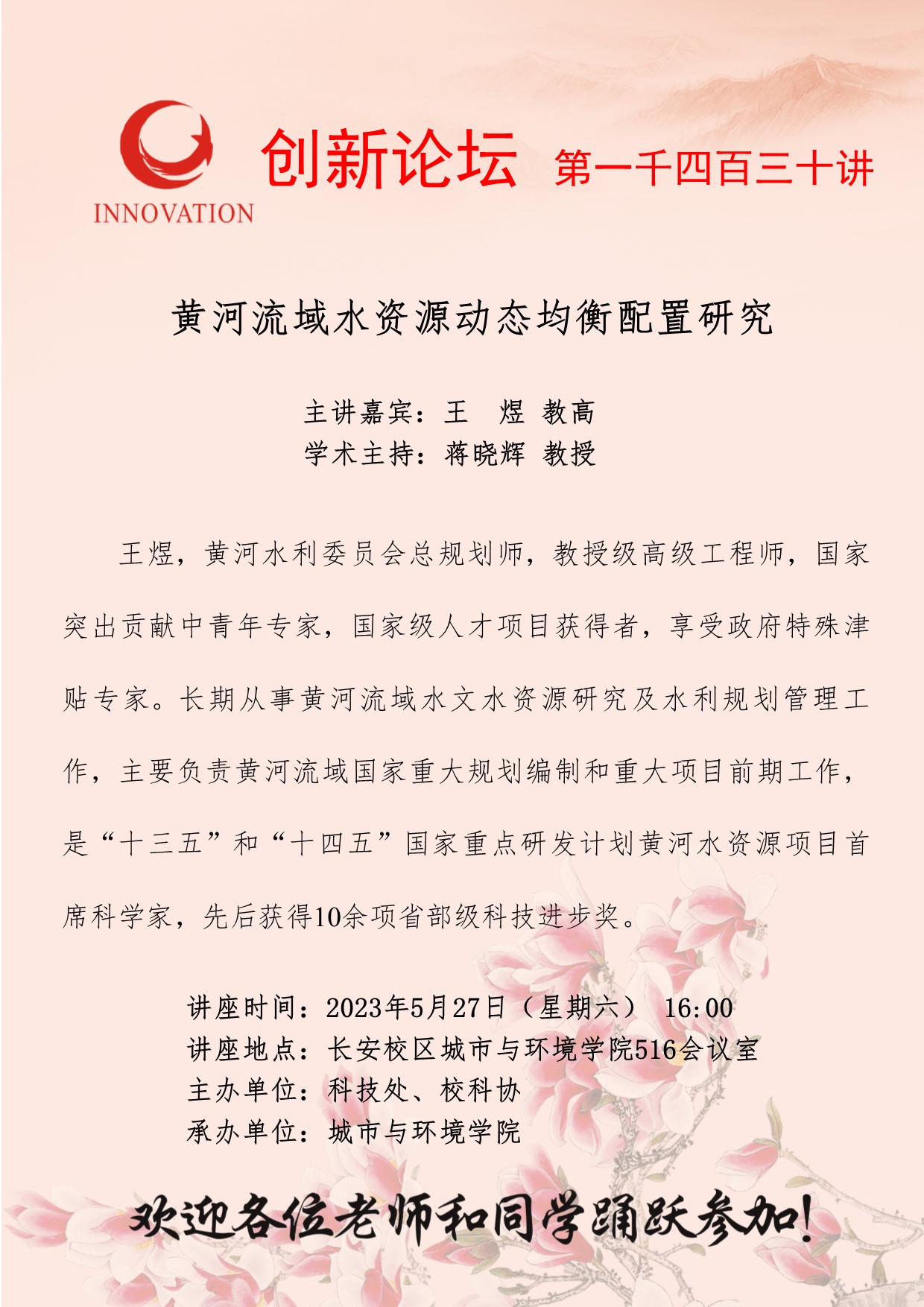 乐鱼网页版页面登录创新论坛第一千四百三十讲:黄河流域水资源动态均衡配置研究