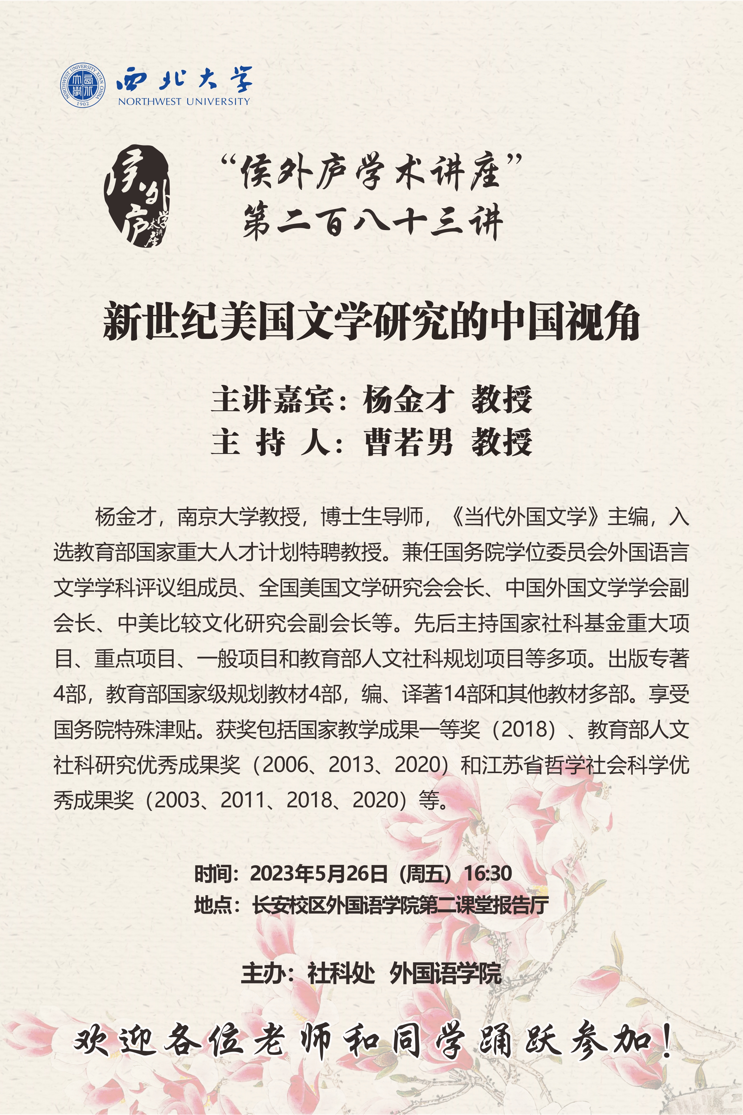 侯外庐学术讲座第二百八十三讲:新世纪美国文学研究的中国视角
