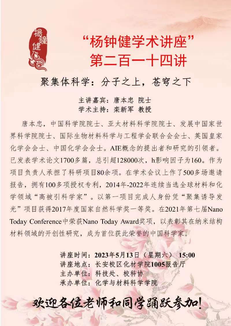 “杨钟健学术讲座”第二百一十四讲:聚集体科学:分子之上,苍穹之下