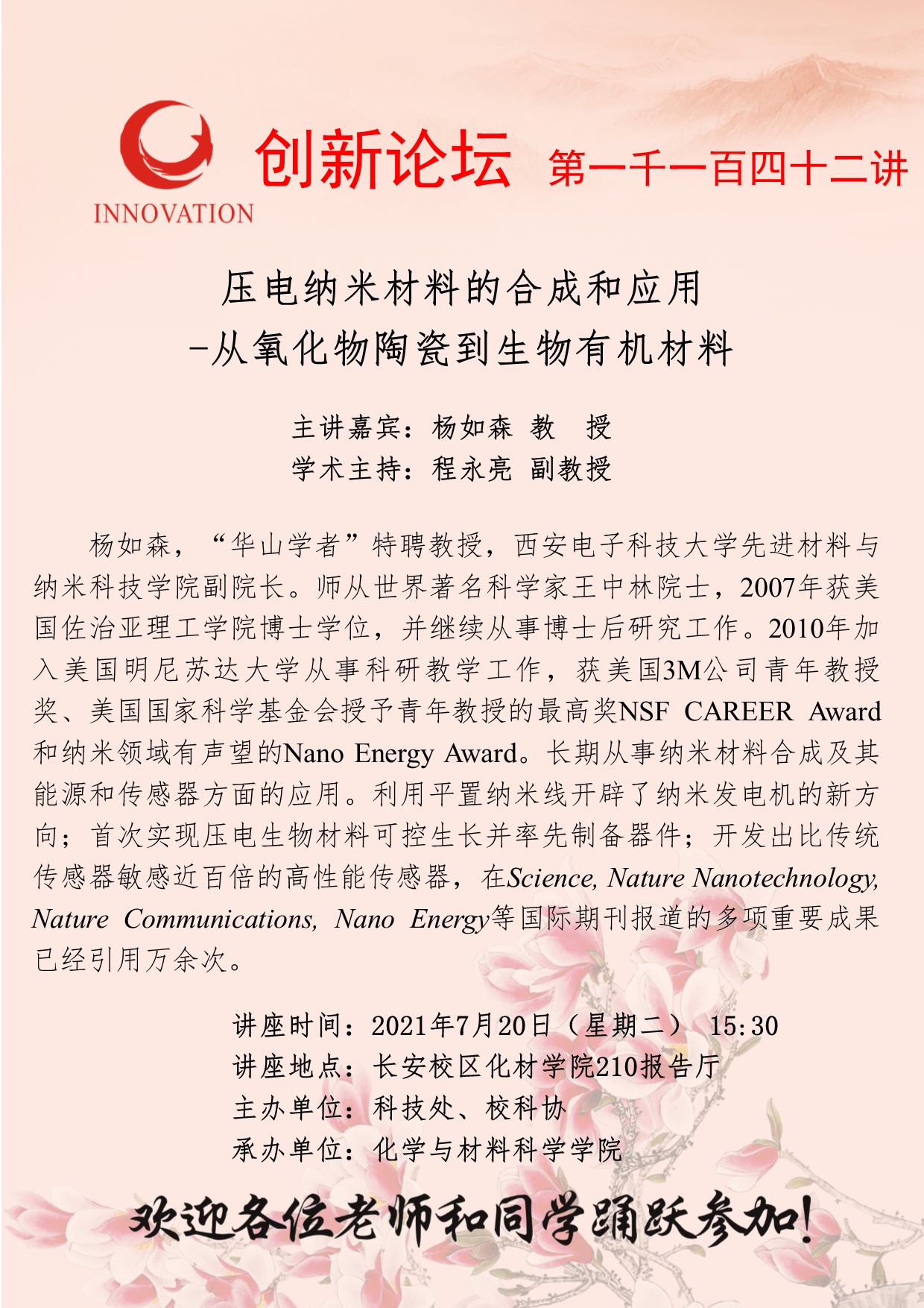 乐鱼网页版页面登录创新论坛第一千一百四十二讲:压电纳米材料的合成和应用-从氧化物陶瓷到生物有机材料