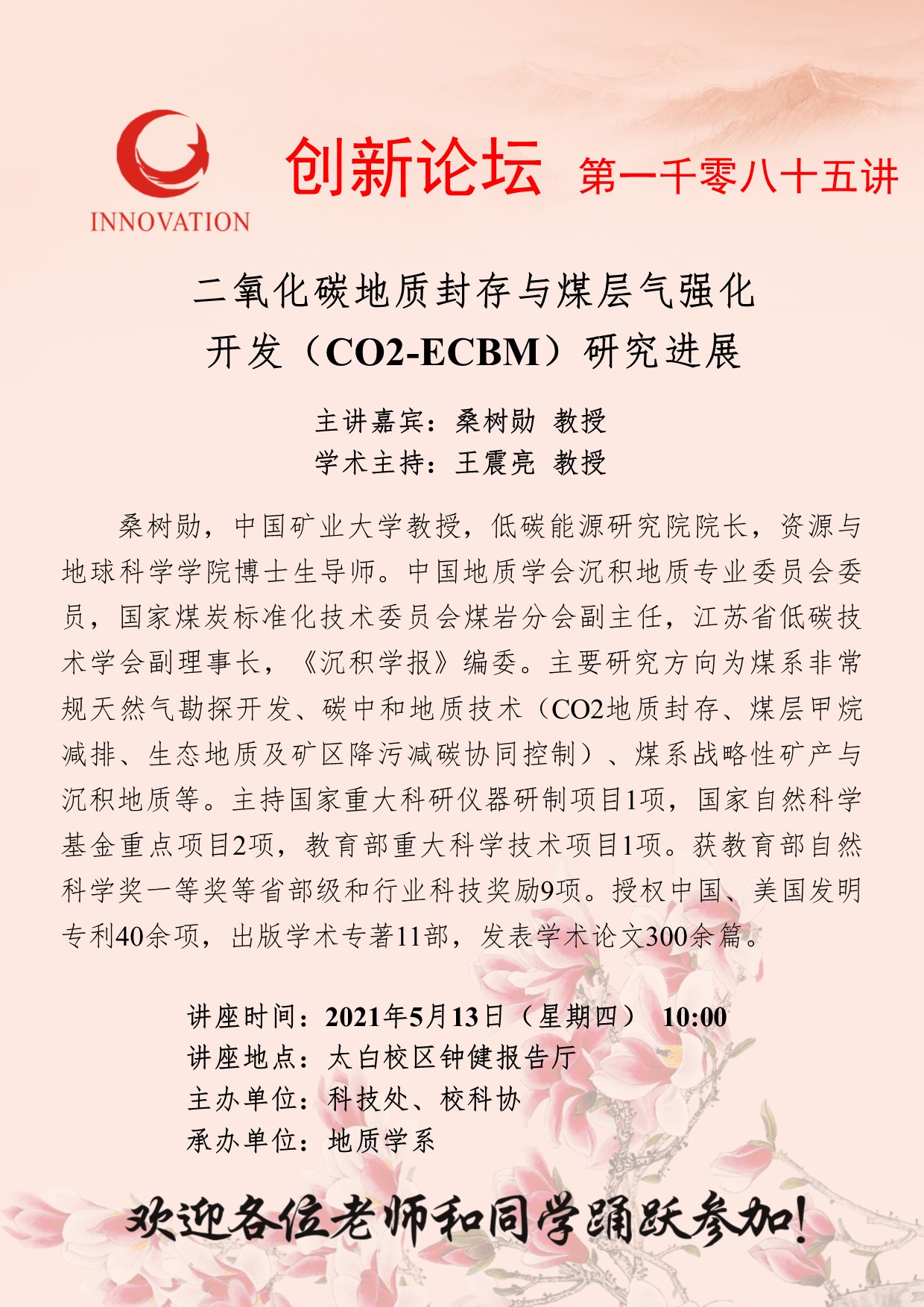 乐鱼网页版页面登录创新论坛第一千零八十五讲:二氧化碳地质封存与煤层气强化开发(CO2-ECBM)研究进展