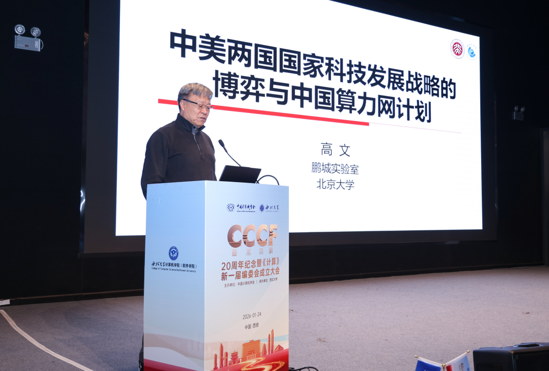 1月24日,中国科学院院士、北京大学教授、鹏城实验室主任高文做客乐鱼网页版页面登录“杨钟健学术讲座”,为校内外师生作了题为“中美两国国家科技发展战略的博弈与中国算力网计划”的学术报告。乐鱼网页版页面登录党委书记蒋林,计算机学院负责人以及来自全国的特邀嘉宾、学界同仁、师生代表等共同参加了报告会。报告会由中国科学院院士、清华大学教授刘云浩主持。