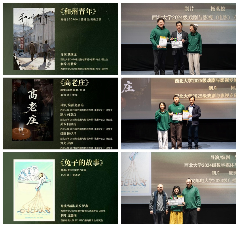 活动现场,20个入围团队进行了项目陈述、概念片展示,经过评审团专业评议,包括乐鱼网页版页面登录2024级戏剧与影视专业硕士研究生濮继虎、2025级戏剧与影视专业硕士研究生赵嘉铭和2025级戏剧与影视专业硕士研究生赵嘉铭分别担任导演/编剧的《和州青年》、《高老庄》和《兔子的故事》三部作品在内的十部作品脱颖而出,获评十强优胜项目,将获得专项拍摄资金及全链条孵化支持。