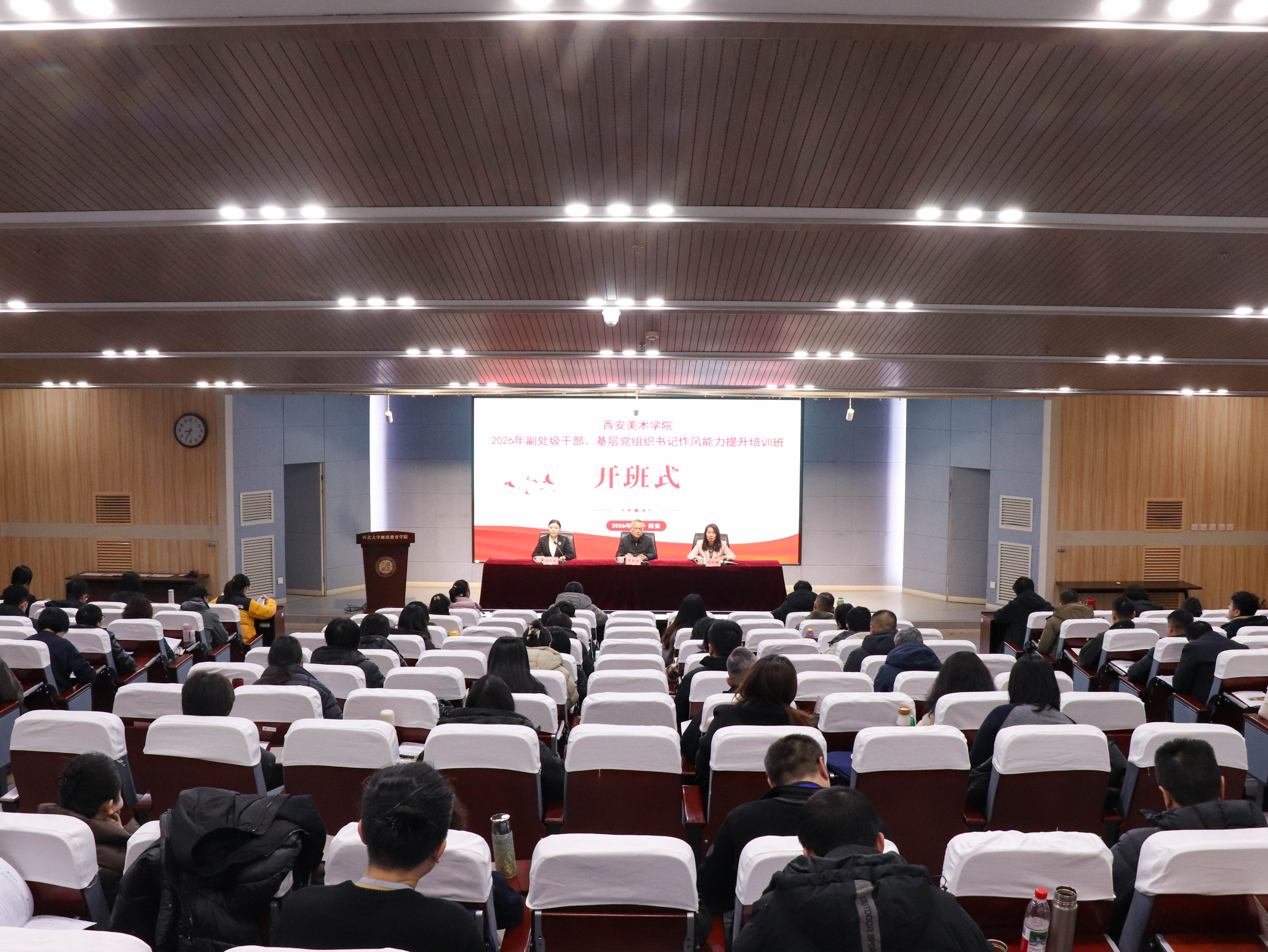 1月7日,由西安美术学院主办、中华文化培训学院承办的西安美术学院2026年副处级干部、基层党组织书记作风能力提升培训班在乐鱼网页版页面登录桃园校区开班。西安美术学院党委书记丁巨涛,乐鱼网页版页面登录党委常委、副校长范代娣出席开班式。来自西安美术学院的副处级干部、基层党组织换届后新任职的党支部书记80余人参加。