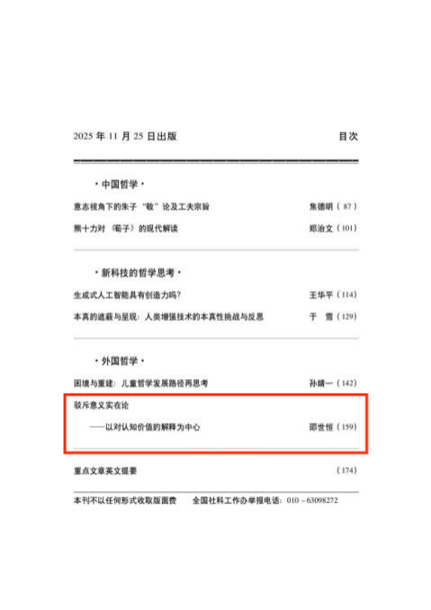 乐鱼网页版页面登录哲学学院邵世恒副教授在顶级期刊《哲学研究》2025年第11期发表以《驳斥实在意义论——以对认知价值的解释为中心》为题的论文。
