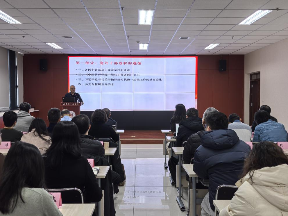 活动中,陕西省社会主义学院蒙晓哲教授以“党外干部如何围绕‘十五五’规划建议履职”为题,从党外干部履职的遵循、国家“十五五”规划建议、党外干部履好职的建议等方面,重点解读了党的二十届四中全会精神,系统讲解了我国“十五五”规划建议的编制过程和主要内容,结合高校实际,详细梳理了党外人士履职尽责的政策依据、路径方法和目标要求,为广大统战成员如何围绕“十五五”时期我国经济社会发展高质量履职提出了很好的意见建议。乐鱼网页版页面登录区域国别学院王晋教授以“国际形势及热点问题”为题,从国际政治的主要概念、主要国际数据的对比、中国面临的外交挑战等方面,深刻剖析了当前国际局势的特点以及多维视角下大国博弈的本质,就我国自身的独特优势和面临的“五组挑战”进行分析,为广大统战成员准确把握国际局势、更好服务国家战略需求提供借鉴和指导。
