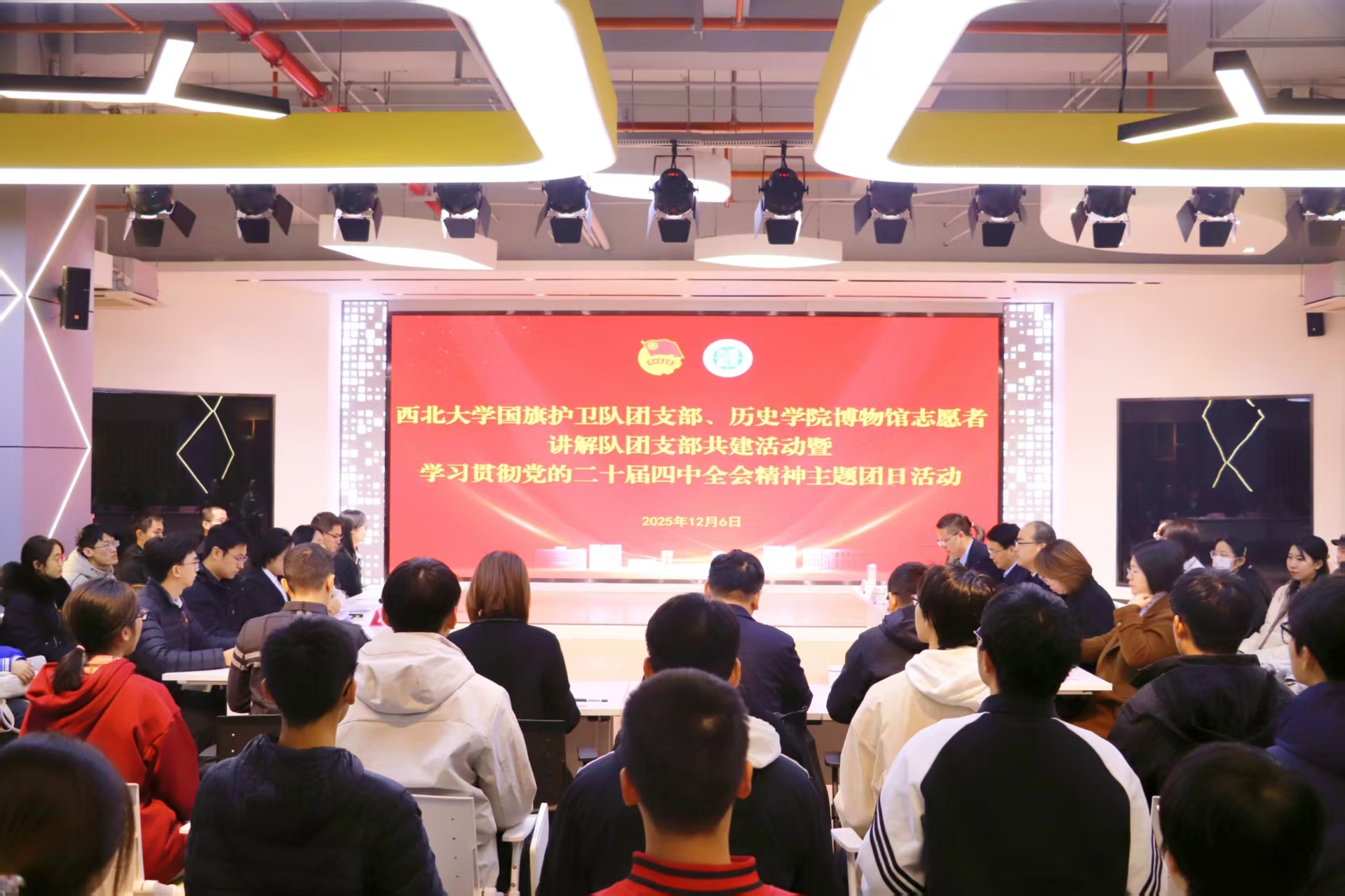12月6日下午,乐鱼网页版页面登录国旗护卫队团支部与历史学院博物馆志愿者讲解队团支部共建活动暨学习贯彻党的二十届四中全会精神主题团日活动在长安校区举行。团省委书记徐永胜,基层组织建设部部长宋薇娜、一级主任科员任振翔,校党委副书记张远军等出席活动,校团委全体工作人员、历史学院相关负责人及两个支部全体团员青年参加活动。活动由校团委书记刘博主持。