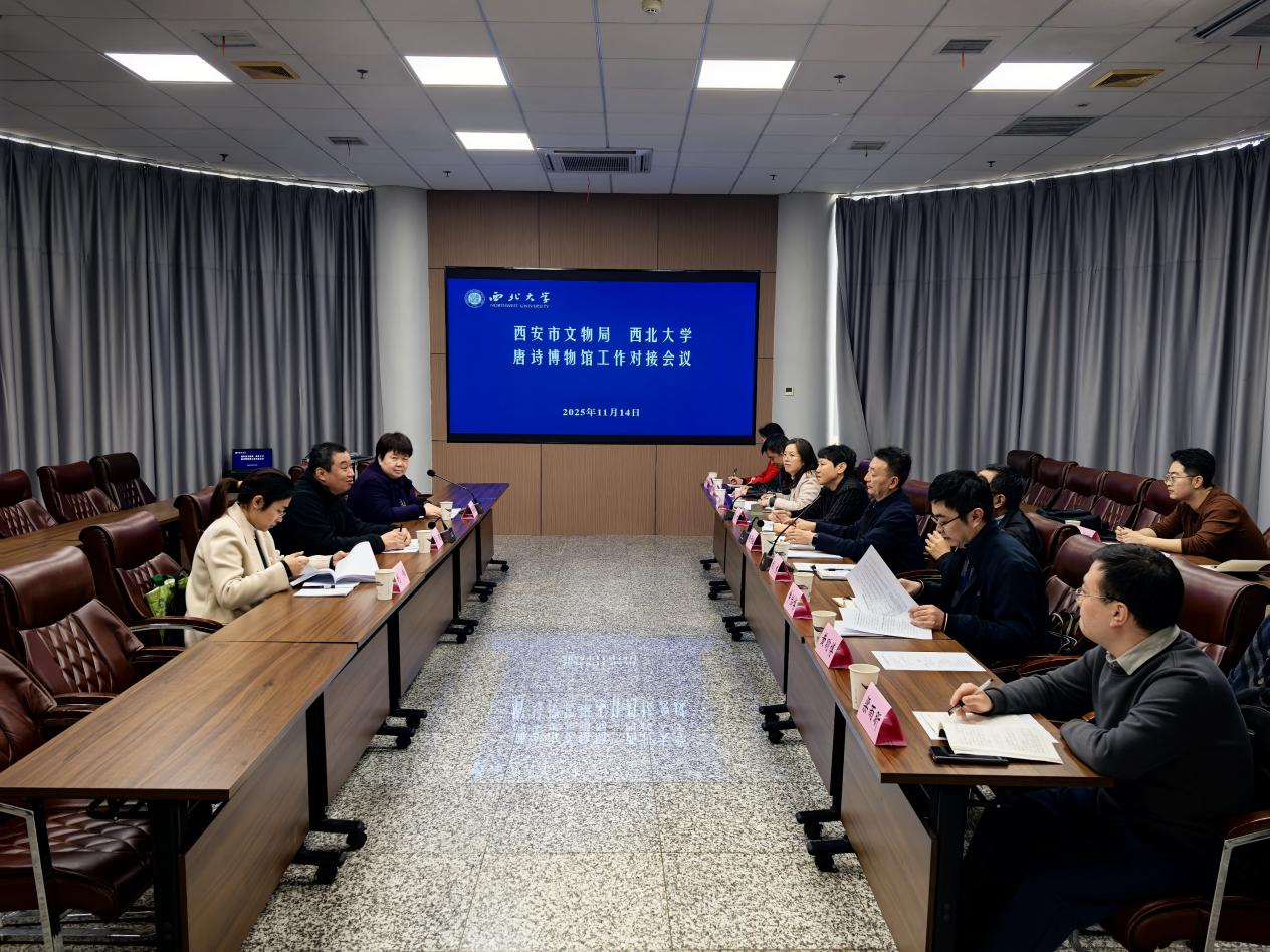 11月14日下午,西安市文物局党组成员、副局长冯健一行来乐鱼网页版页面登录,就唐诗博物馆建设工作开展调研座谈。会议由校党委副书记赵作纽主持。市文物局博物馆与社会文物处处长刘夏盈和相关负责人,乐鱼网页版页面登录博物馆、中国文化研究中心、社科处、国资处、图书馆负责人参加调研座谈。