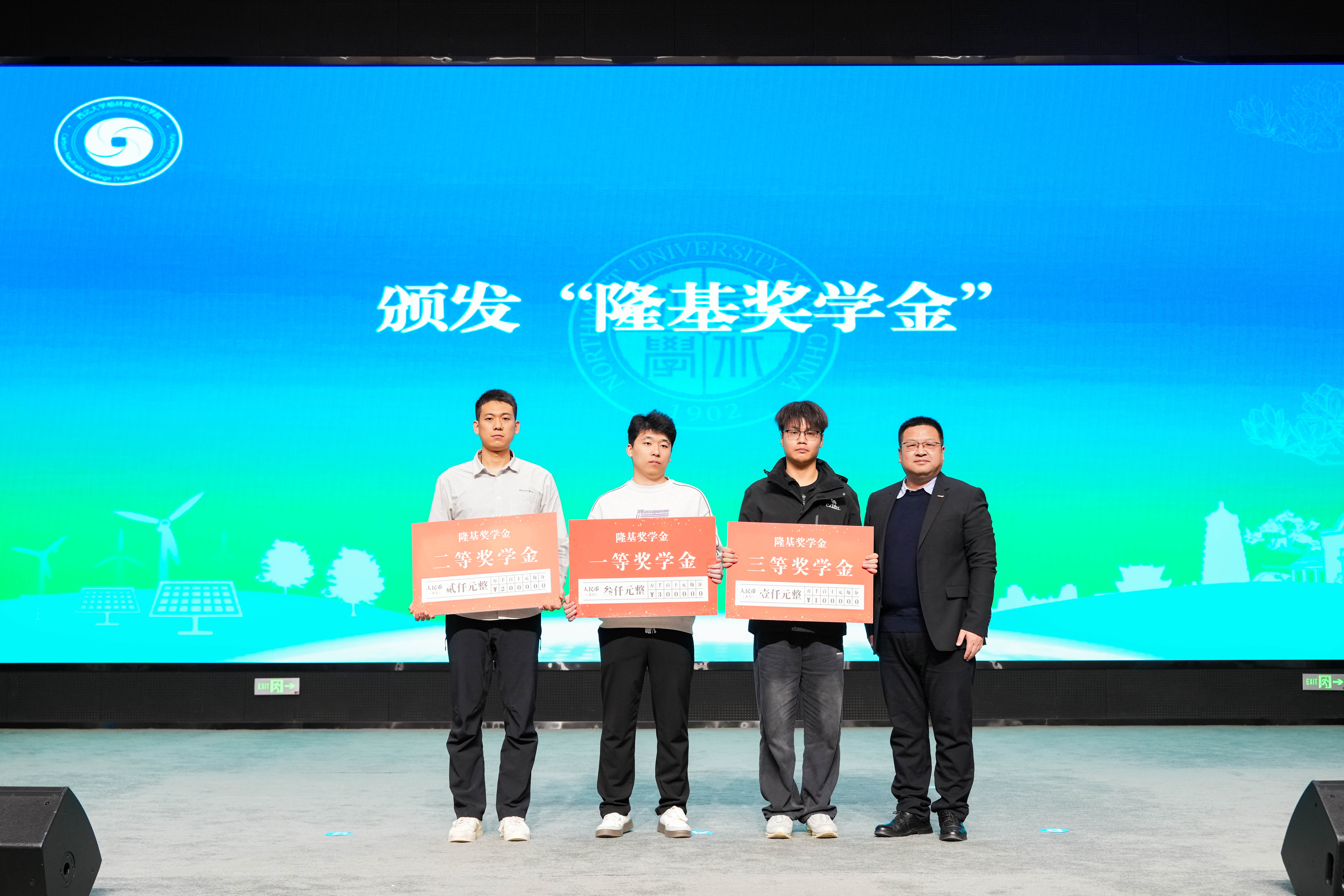 隆基绿能可持续发展与ESG负责人汪子阜为首期隆基班优秀学生代表颁发“隆基奖学金”。