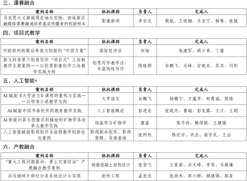 案例教学是以学生为中心,以案例为基础,通过呈现案例情境,将理论与实践紧密结合,引导学生发现问题、分析问题、解决问题,从而掌握理论、形成观点、提高能力的一种教学方式。陕西省本科教学案例征集工作旨在充分发挥示范引领作用,激励一线教师投身教育教学改革,凝练教育教学特色,推动本科教育教学高质量发展,全面提高人才自主培养质量。首届本科教学案例征集共分为课程思政、人工智能+、产教融合、科教融汇、课赛融合、项目式教学六个类别,最终共441个教学案例入选,入选案例将在“陕西高等教育智慧平台”集中展示。