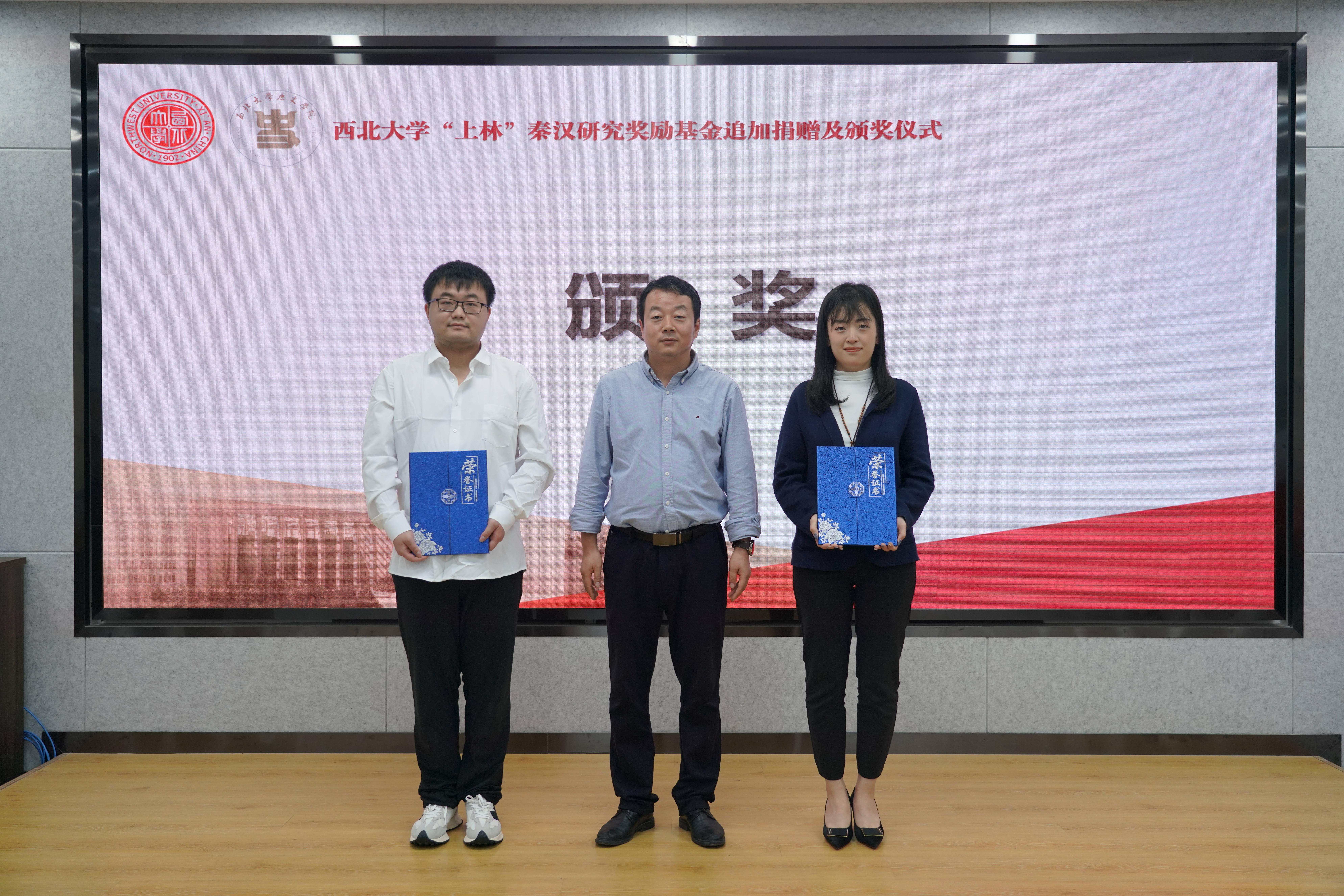 王子今教授、李军教授分别为本次“上林”秦汉研究奖励基金获得者颁奖。