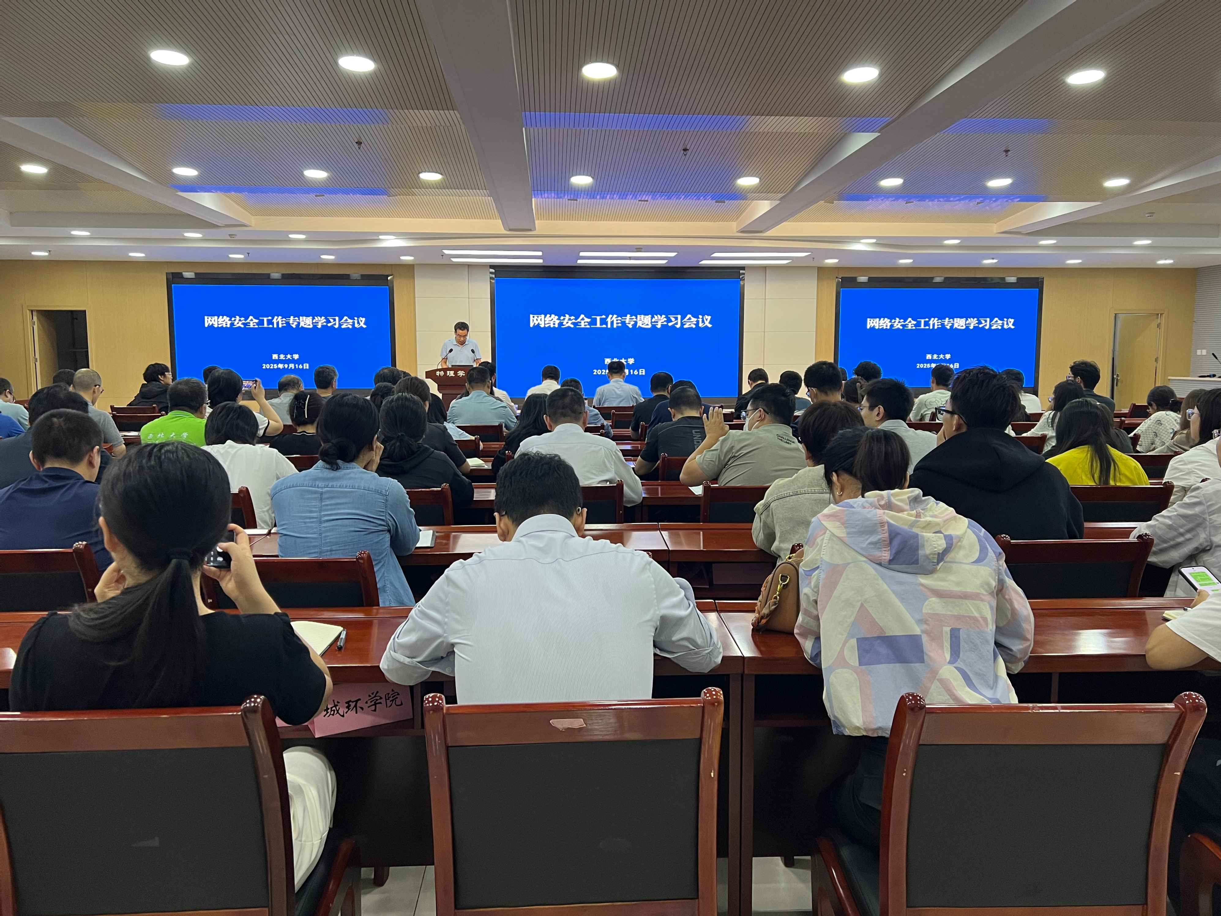9月15日至21日是第十二届国家网络安全宣传周,9月16日下午,学校在长安校区组织召开了网络安全工作专题学习会议。会议邀请了西安交通大学网络空间安全学院副院长刘烃教授和绿盟科技集团陕西代表处行业总监孙洋做专题报告,陕西省教育信息化发展研究中心副主任袁新瑞传达了教育部高校数字化专题研讨会相关会议精神。校党委常委、副校长田明纲出席会议,校内各单位信息化工作负责人及信息员、各院系辅导员代表和师生代表参加会议。
