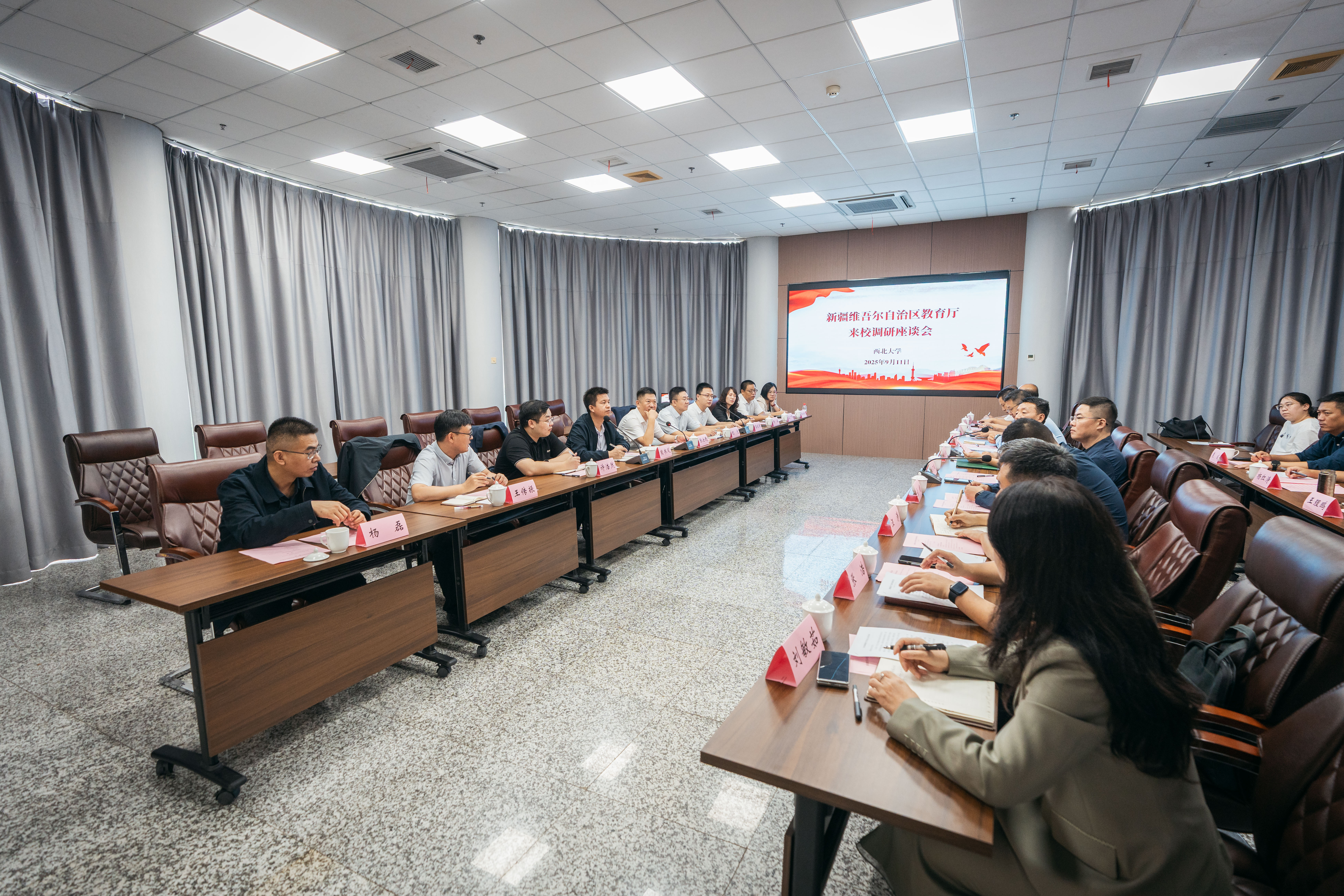 9月11日,新疆维吾尔自治区党委教育工委专职副书记、教育厅党组成员张士民一行来校进行专题调研座谈。省委教育工委组织部副部长刘万斌,校党委副书记赵作纽,校党委常委、副校长范代娣陪同调研。学校相关单位负责人参加了座谈会。