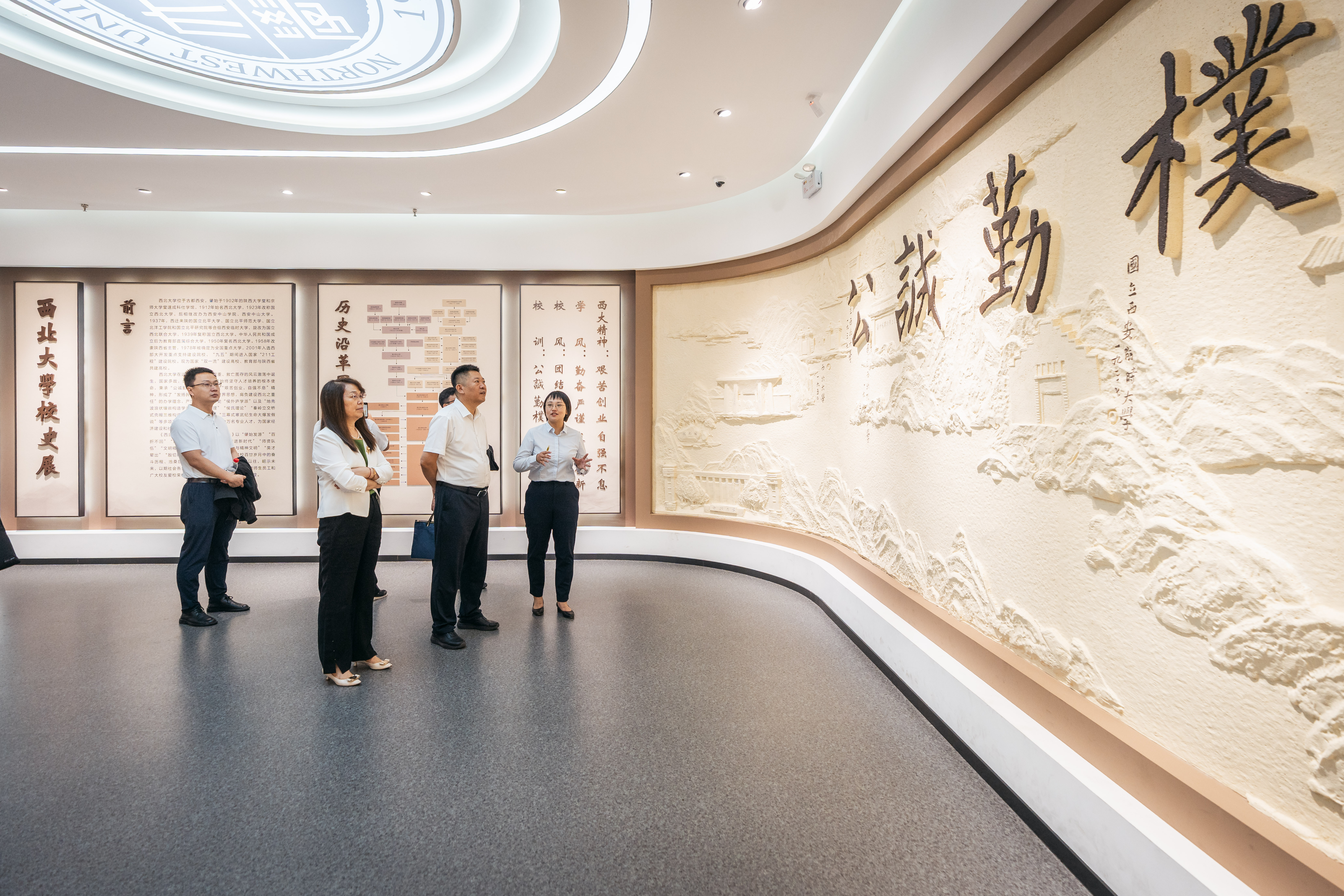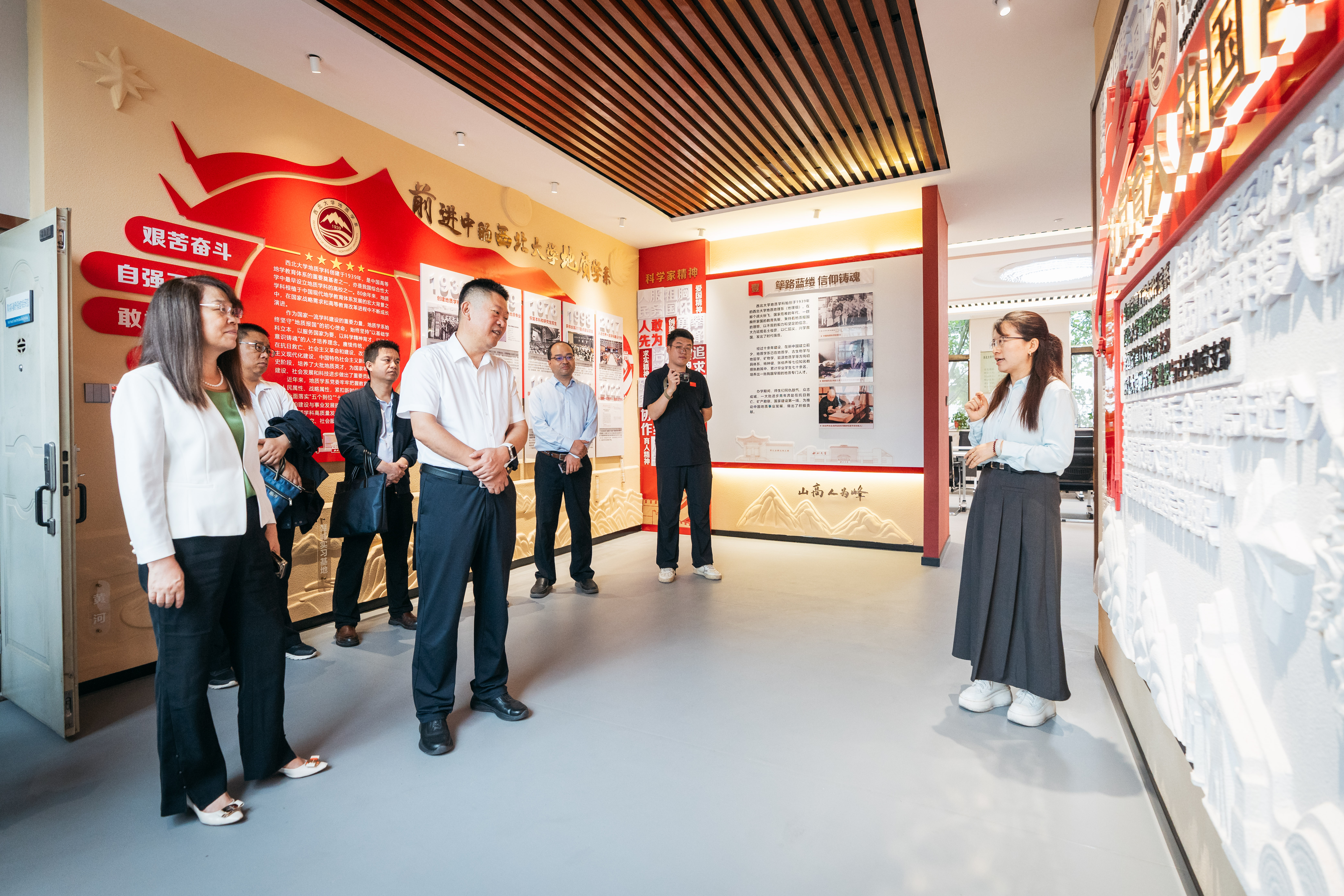 座谈会前,张士民一行在范代娣的陪同下调研了学校校史馆、侯伯宇先进事迹展览馆、丝绸之路考古馆和地质学系党建工作展览馆。(图/马骞)
