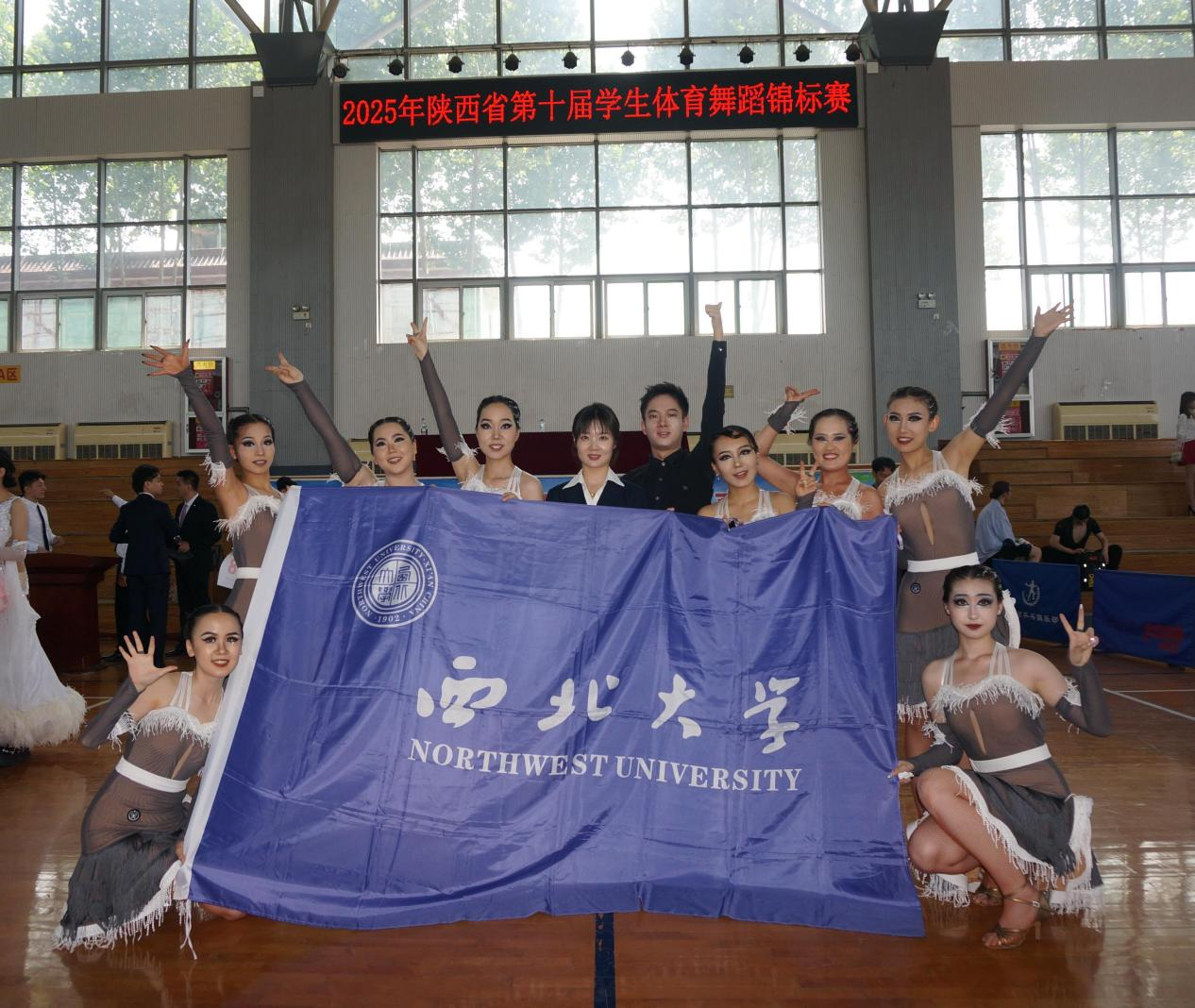 6月21日,陕西省第10届学生体育舞蹈暨健身交谊舞锦标赛在西京学院举办。本次赛事是陕西省高校体育舞蹈的顶级赛事,共有来自全省32所学校的近600名选手参赛。乐鱼网页版页面登录体育舞蹈队参加7个组别的比赛,经过几日激烈角逐,校体育舞蹈队凭借精湛技艺与顽强拼搏精神,共取得5项冠军、1项亚军的优异成绩。2021级艺术学院研究生王锦瑾和2024级物理学院研究生袁润捷获“优秀运动员”称号,体育教研部张晓晨获“优秀教练员”称号。